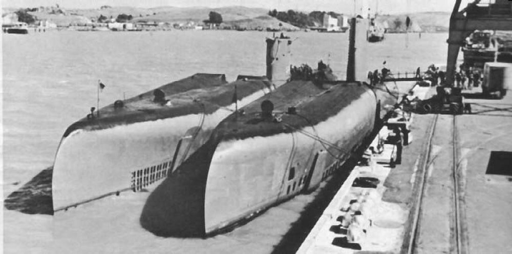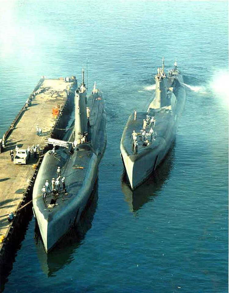 ![]() | 497k | Grayback (SSG-574) and Growler (SSG-577) alongside each other. | USN photo courtesy of Scott Koen & ussnewyork.com. | |