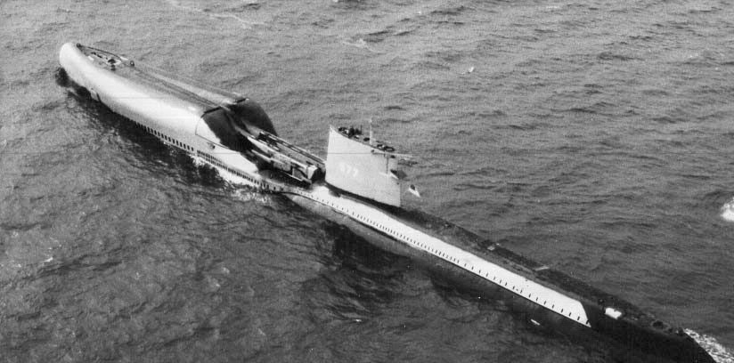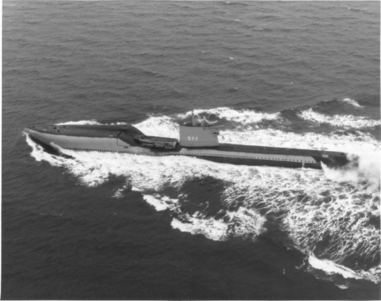 ![]() | 94k | Growler (SSG-577), underway, port side view, circa early 60's. | Courtesy of John Hummel, USN (Retired). | |