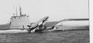 ![]() 0857728 | 799k | Growler (SSG-577) being readied for launching, at the Portsmouth Navy Yard, New Hampshire, 5 April 1958. | Photo NH-53789 courtesy history.navy.mil | |