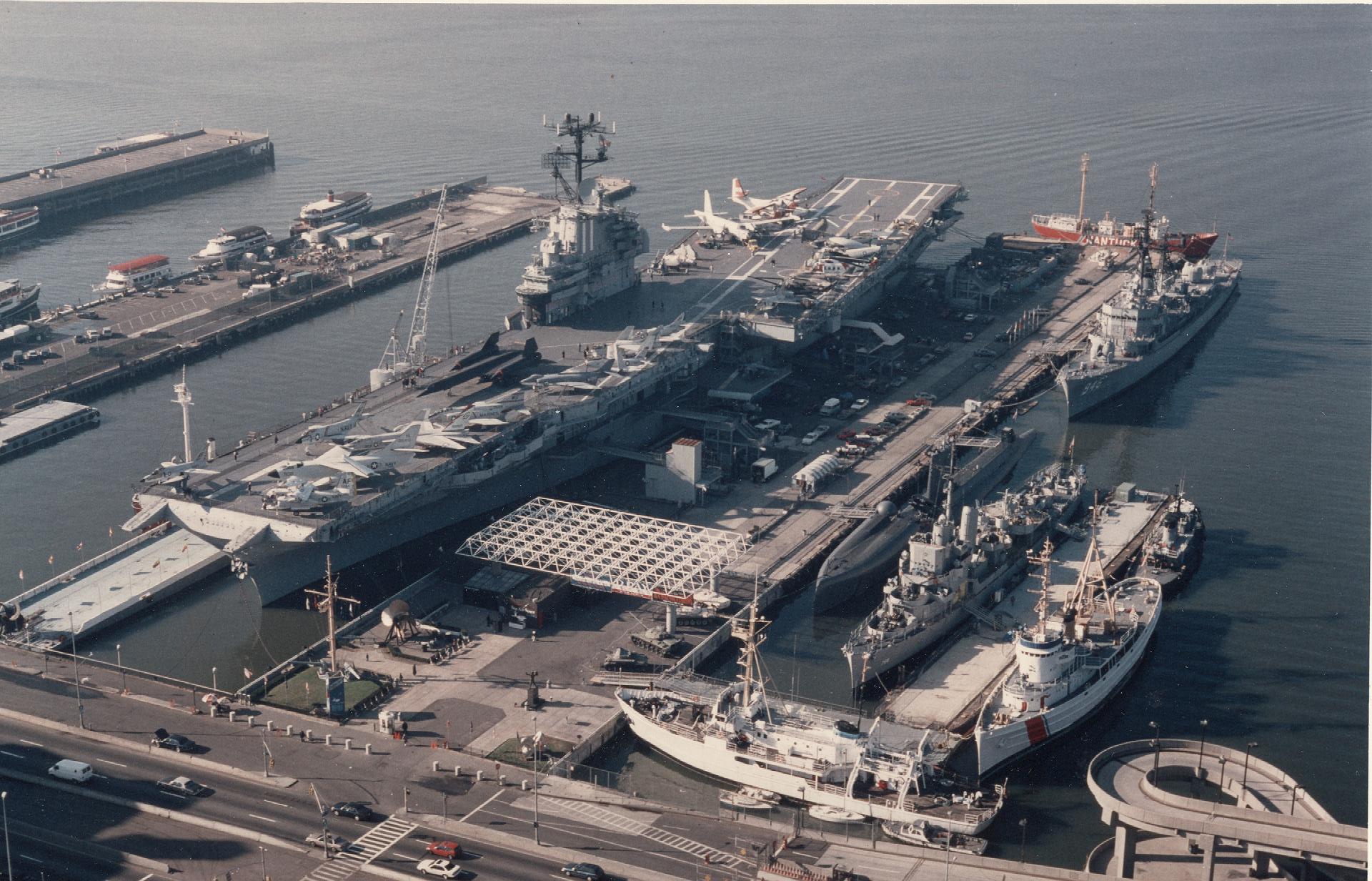 ![]() | 378k | Intrepid Museum complex 1996; Intrepid (CVA-11), Growler (SSG-577), Slater, Edson, Tamaroa, Nantucket, Hackensack. | USN photo courtesy of Scott Koen & ussnewyork.com. | |
