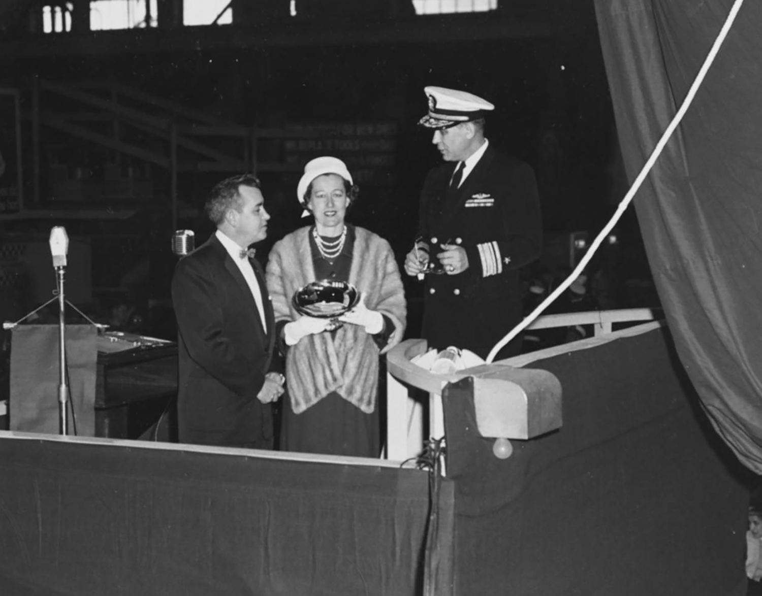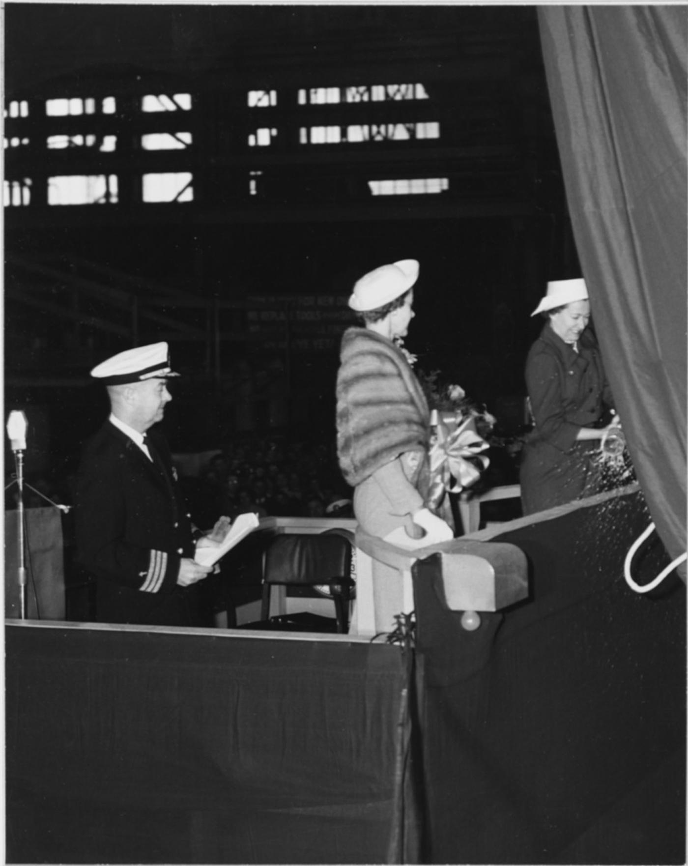 ![]() 0857726 | 558k | Mrs. Robert K. Byerts christening the Growler (SSG-577). | Photo courtesy of Dale Hargrave. | |