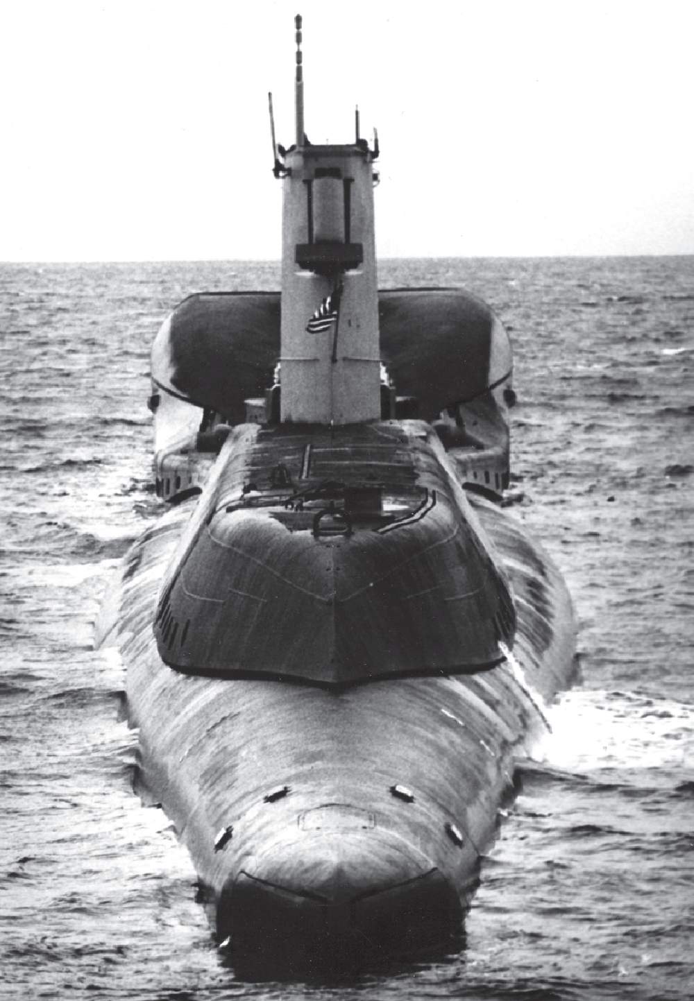 ![]() | 920k | Growler (SSG-577) looking over her bulbous missile hanger, underway, with a Regulus missile in the launcher pod. Circa 1959-60. | Courtesy of Nick Spark. | |