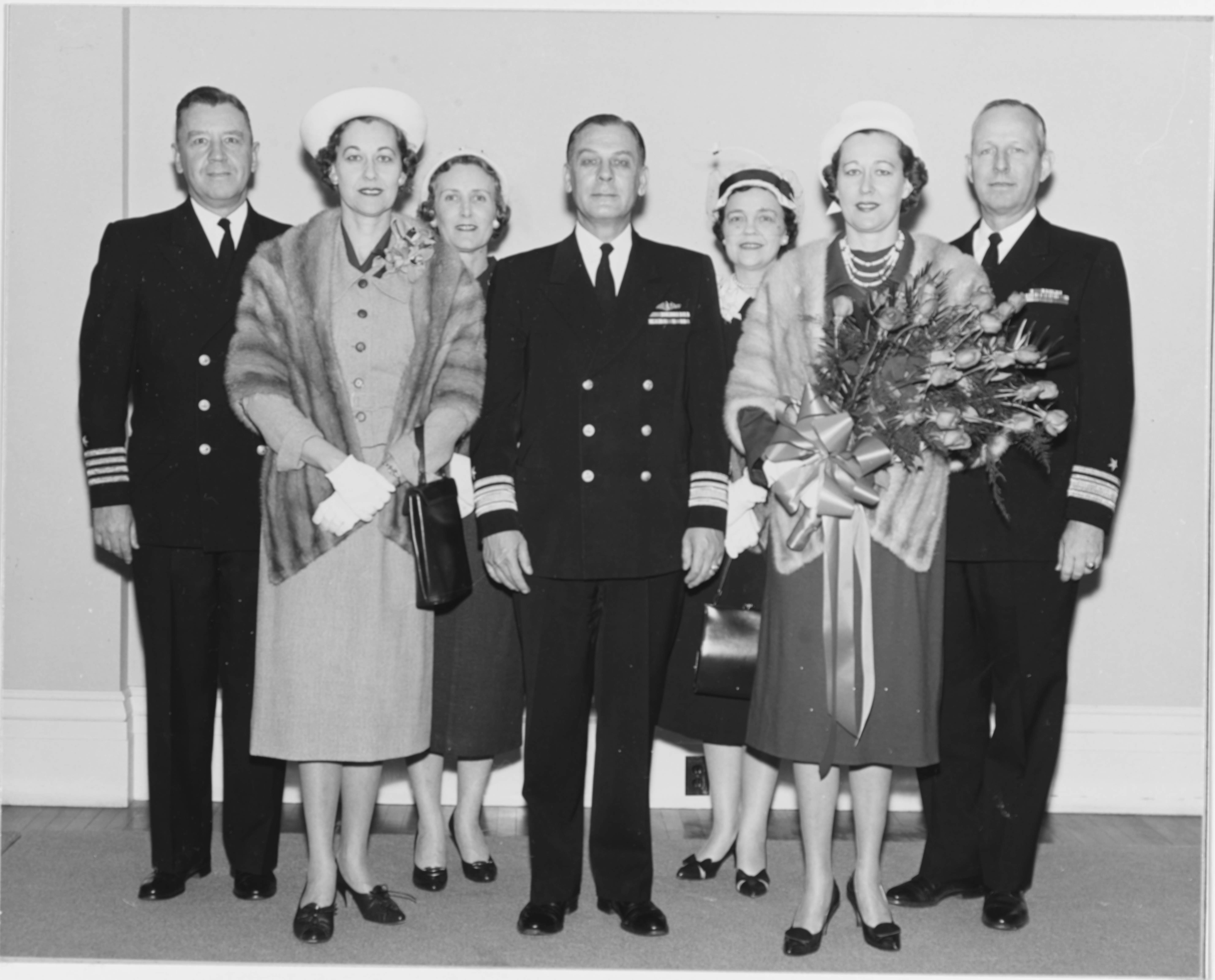 ![]() 0857727 | 727k | Left to Right: Captain Warren C. Hall, Jr., Mrs. Hall, Matron of Honor, Mrs. Robert L. Moore, Jr., Rear Admiral Robert L. Moore, Jr., Commander of Portsmouth Naval Shipyard, Mrs. Albert G. Mumma, Mrs. Robert K. Byerts, sponsor, and Rear Admiral A. G. Mumma, chief of Buships, who delivered the principal address at the launching, of Growler (SSG-577), 5 April 1958 at Portsmouth Naval Shipyard, New Hampshire. | Photo NH-53797 courtesy history.navy.mil | |