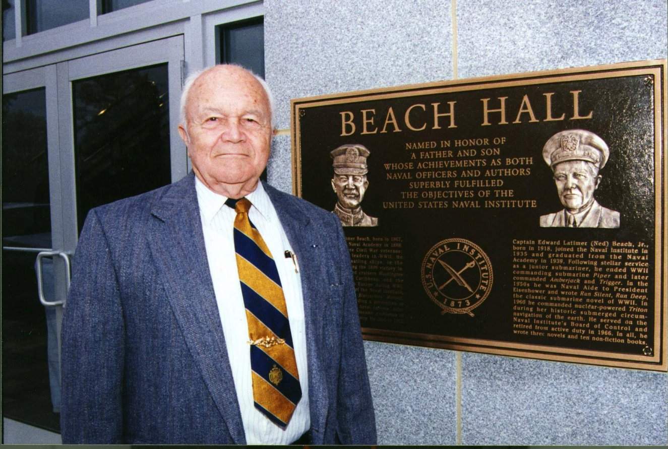315k | Captain Edward L. Beach won fame as a submarine commander and best-selling author describing life beneath the waves. The son of a career naval officer, Beach was born in Palo Alto, California in 1918. He graduated from the U.S. Naval Academy in 1939 and from Submarine School in 1941. During World War II, he served as Damage Control Assistant, Chief Engineer, and Executive Officer of Trigger (SS-237), during which time she was one of the highest scoring submarines in the force. He received the Navy Cross for his service as Executive Officer of Tirante (SS-420) in early 1945. Beach also made one wartime patrol as commanding officer of Piper (SS-409). Following the war, he commanded Amberjack (SS-522), Trigger (SS-564), and Triton (SSRN-586), and served as naval aide to President Dwight D. Eisenhower. Between February and May 1960, Triton, under Beach's command, made the first submerged circumnavigation of the globe. This 83-day voyage proved the ability of nuclear-powered submarines to conduct long-duration operations in any part of the ocean. Beach has also won renown as the author of three submarine novels, including the best selling "Run Silent, Run Deep" "Dust on the Sea," and "Cold is the Sea." He also wrote several nonfiction works, including "Submarine," "Around the World Submerged," "Wreck of the Memphis," "The United States Navy: 200 Years," and his autobiography, "Salt and Steel.""Run Silent, Run Deep" was made into a popular movie starring Clark Gable and Burt Lancaster. In an interview with All Hands Magazine, a U.S. Navy internal information periodical, he didn't like the movie because it wasn't true to the Navy that I saw and tried to describe." He died 1 December 2002 at his Washington, D.C. home. Beach is survived by his wife Ingrid, three children, and four grandchildren. |