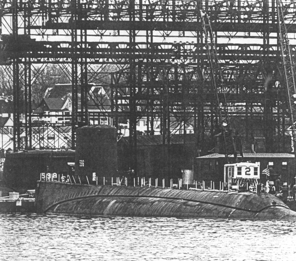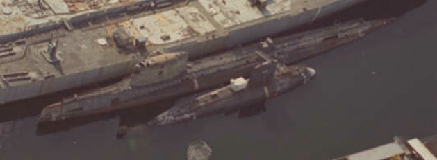 ![]() | 413k | Triton (SSRN-586) undergoing post-launch fitting out at General Dynamics' Electric Boat Shipyard at Groton, CT. | Official USN photo from garrygray.tripod.com via Robert Hurst. | |