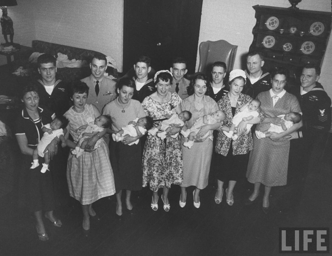 129k | Triton's (SSRN-586) crew members standing behind their wives and new babies, New London, CT., May 1960. | Photographer: Joseph Scherschel, courtesy of life.time.com | |