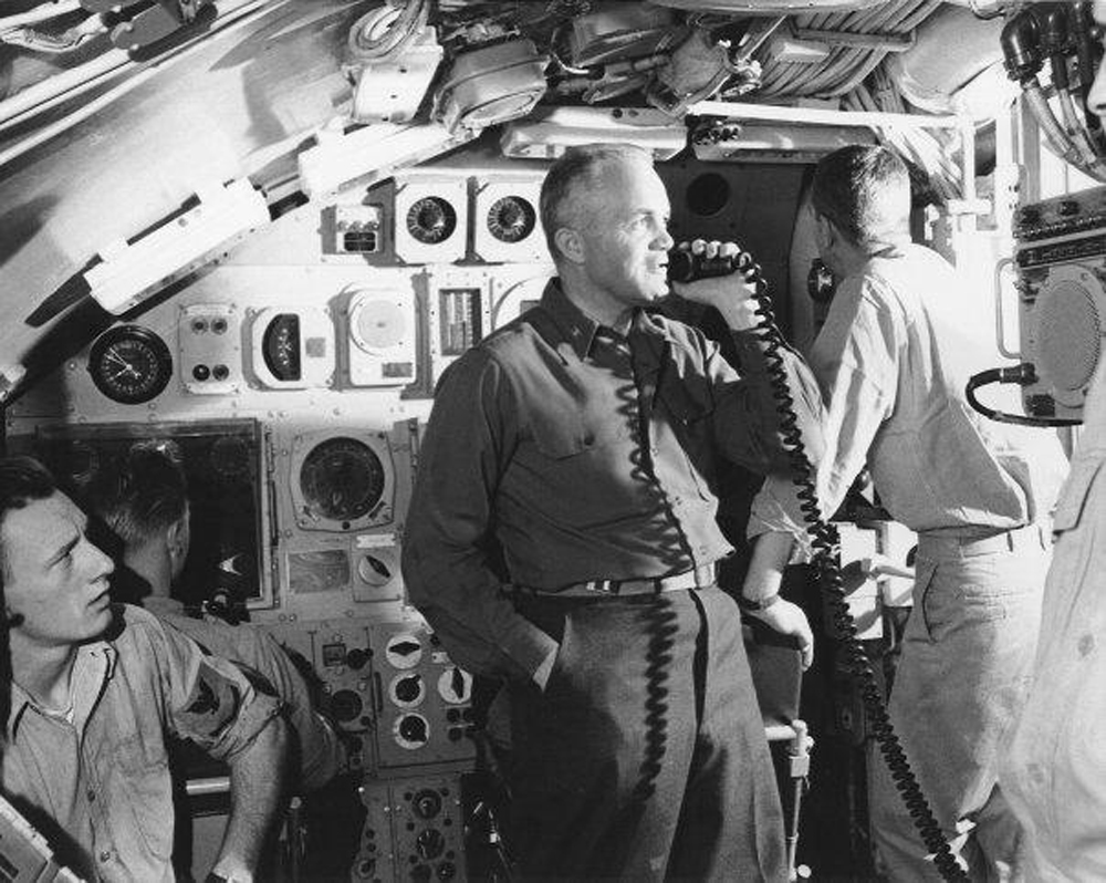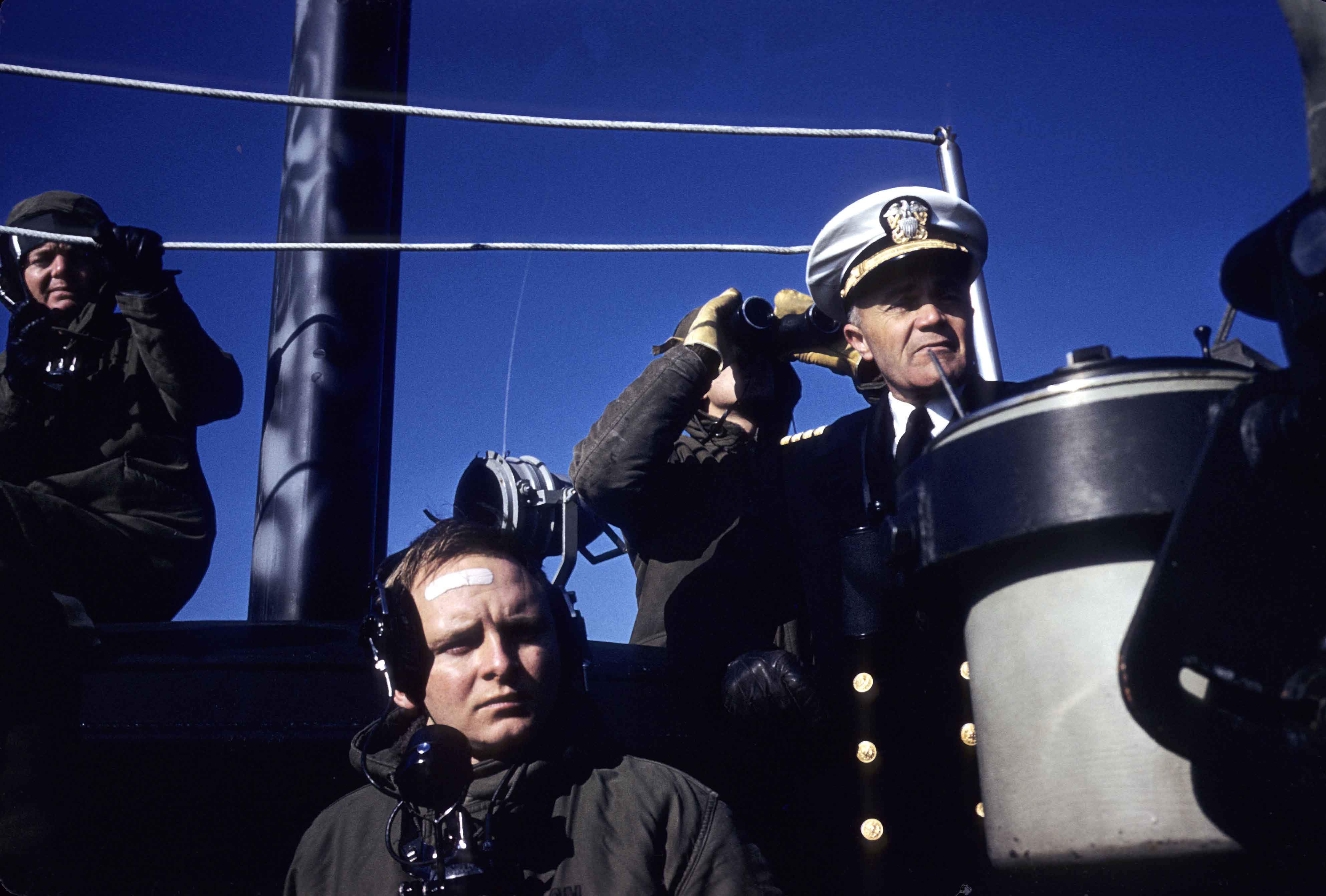 423k | Captain Beach on the bridge of the Triton (SSRN-586). | Photo courtesy of the Triton's (SSRN-586) photographer, William Hadley via Garry Gray. | |
