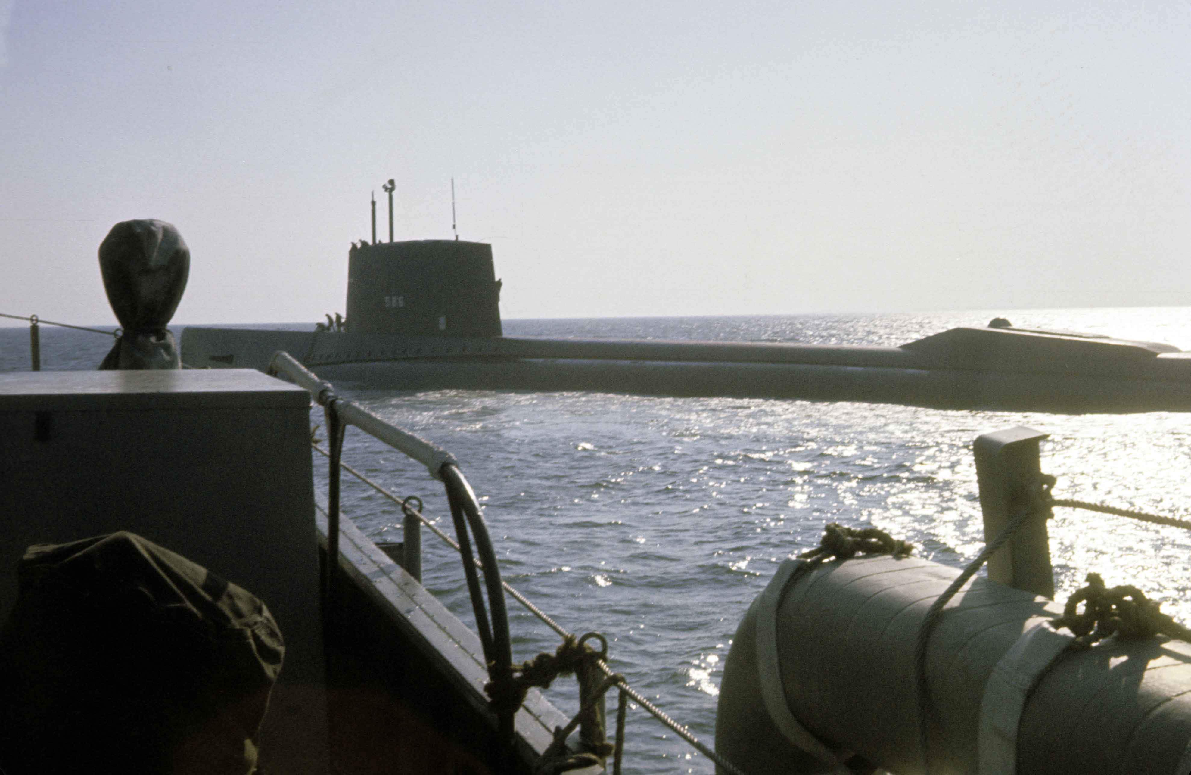 19k | Triton (SSRN-586) photo taken in October 1998 by a Independence (CVA-62) crew member. Lapon (SSN-661) in background. | Courtesy of Don Shelton. | |