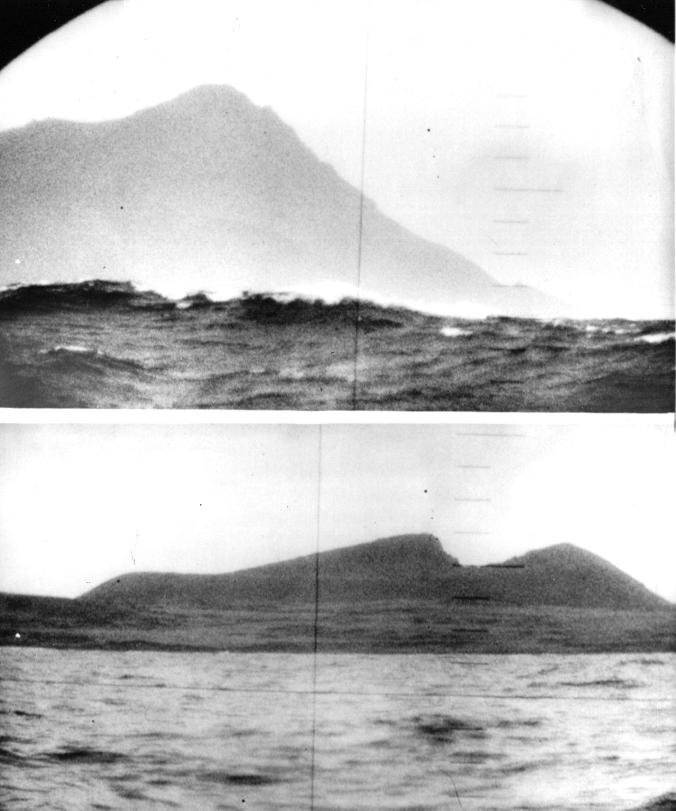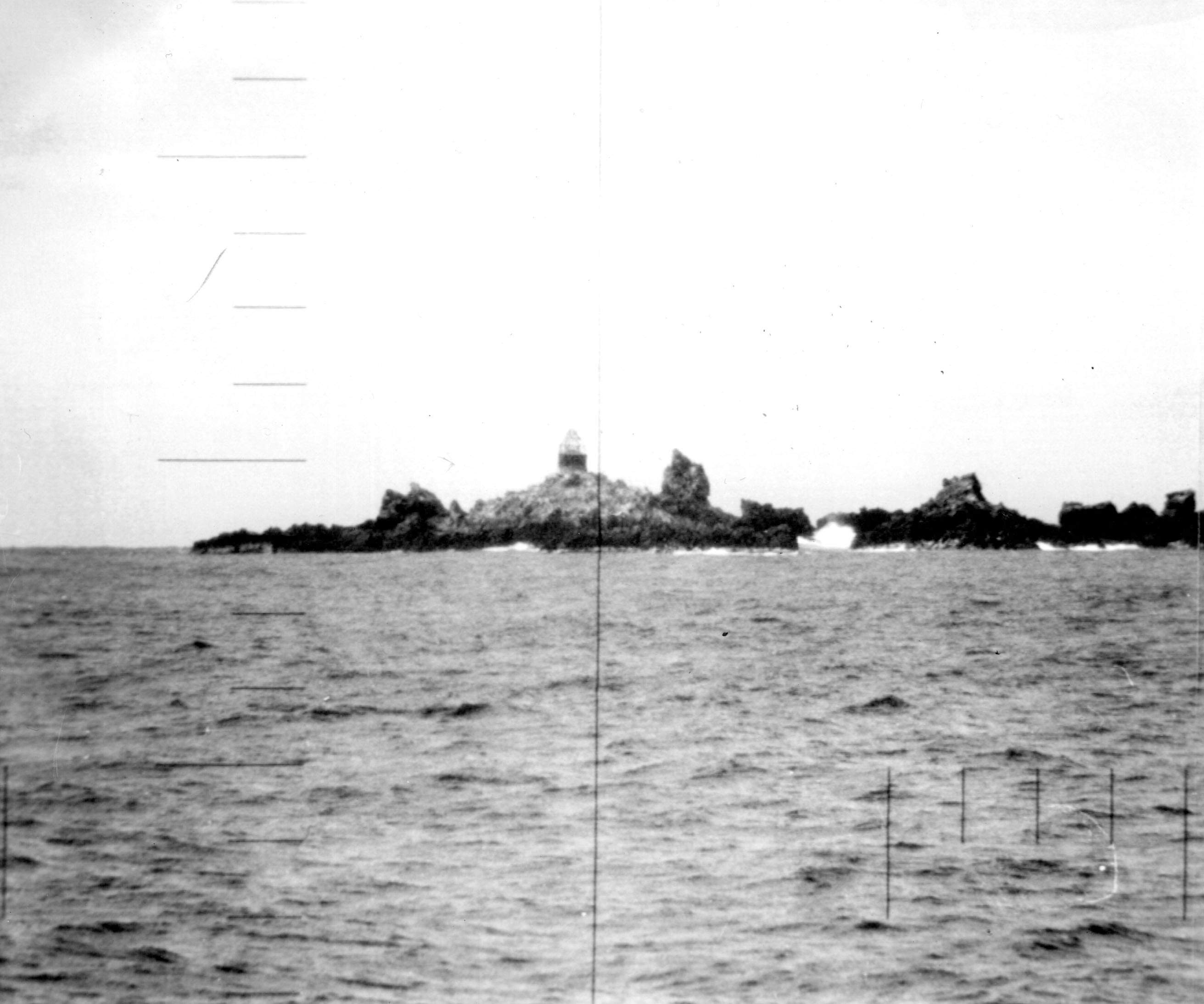 ![]() | 296k | Periscope photo of Saint Peter and Saint Paul rocks jutting out of the Atlantic Ridge taken by the Triton (SSRN-586) on 24 February 1960 during her submerged circumnavigation of the Earth. | Photo from the files of the Vallejo Naval and Historical Museum courtesy of Darryl L. Baker. | |