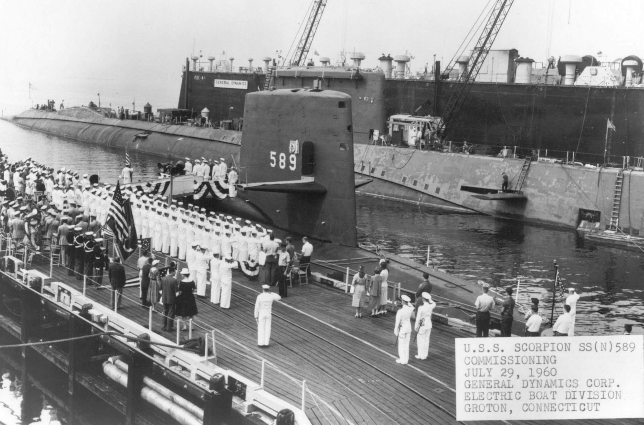 357k | The beginning of Scorpion (SSN-589) as a commissioned warship, 29 July 1960. The Triton (SSRN-586) is seen behind her. Following her post-shakedown availability, Triton assumed her duties as a radar picket submarine in August 1960. | Partial text courtesy of DANFS. USN photo # USN 1051824 courtesy of Scott Koen & ussnewyork.com. |