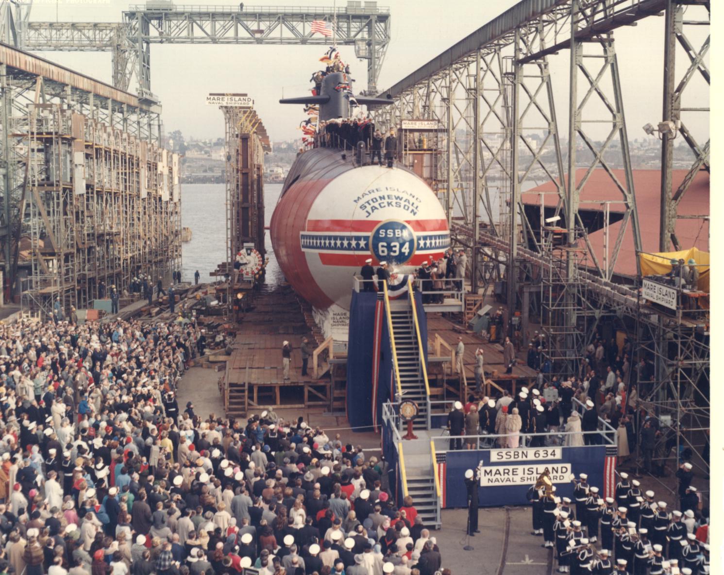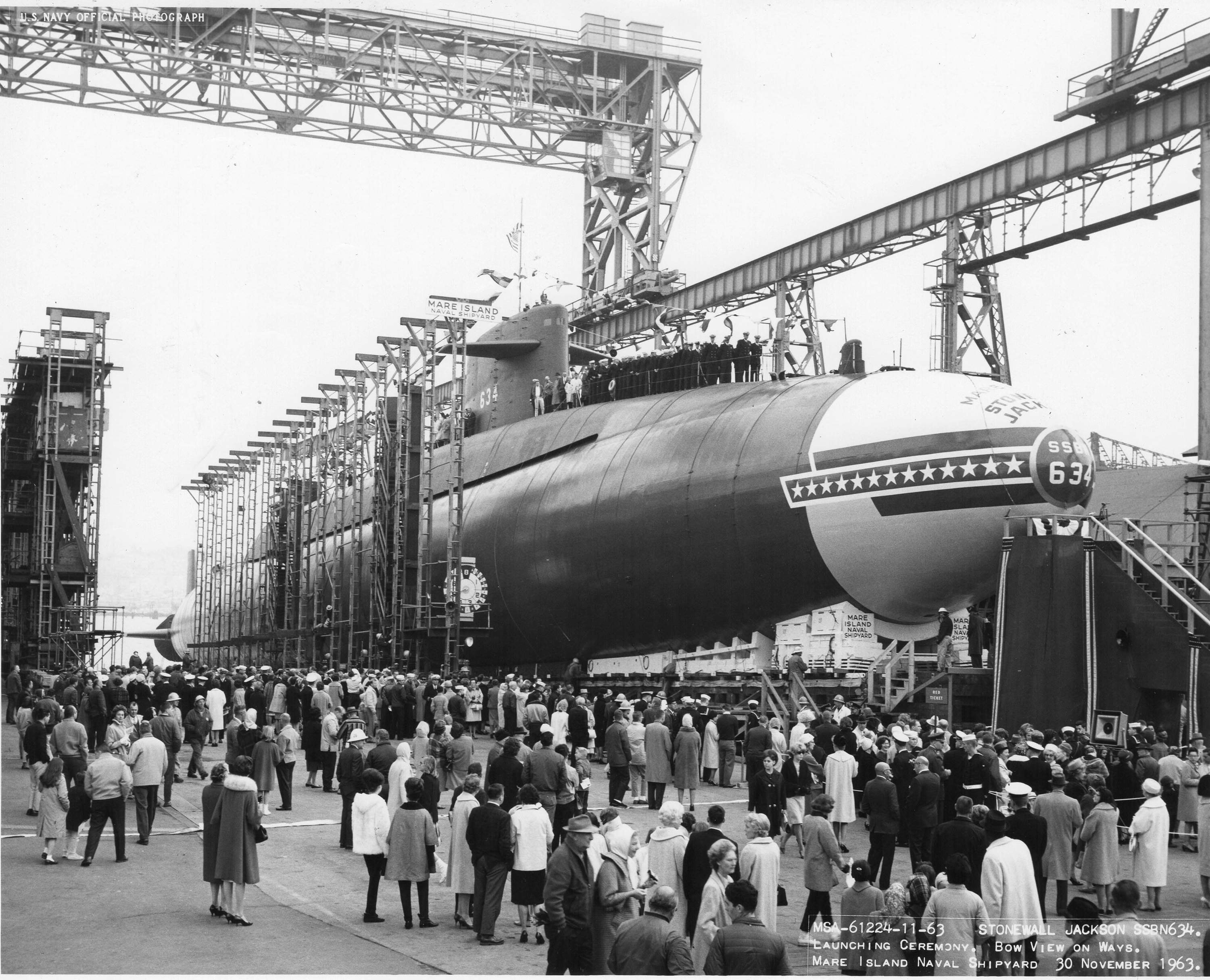 ![]() | 293k | Christening ceremony of the Stonewall Jackson (SSBN-634) at Mare Island Naval Shipyard on 30 November 1963. | USN photo # 61272 courtesy of Darryl L. Baker. | |