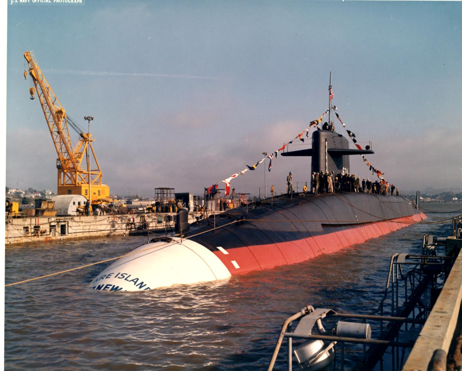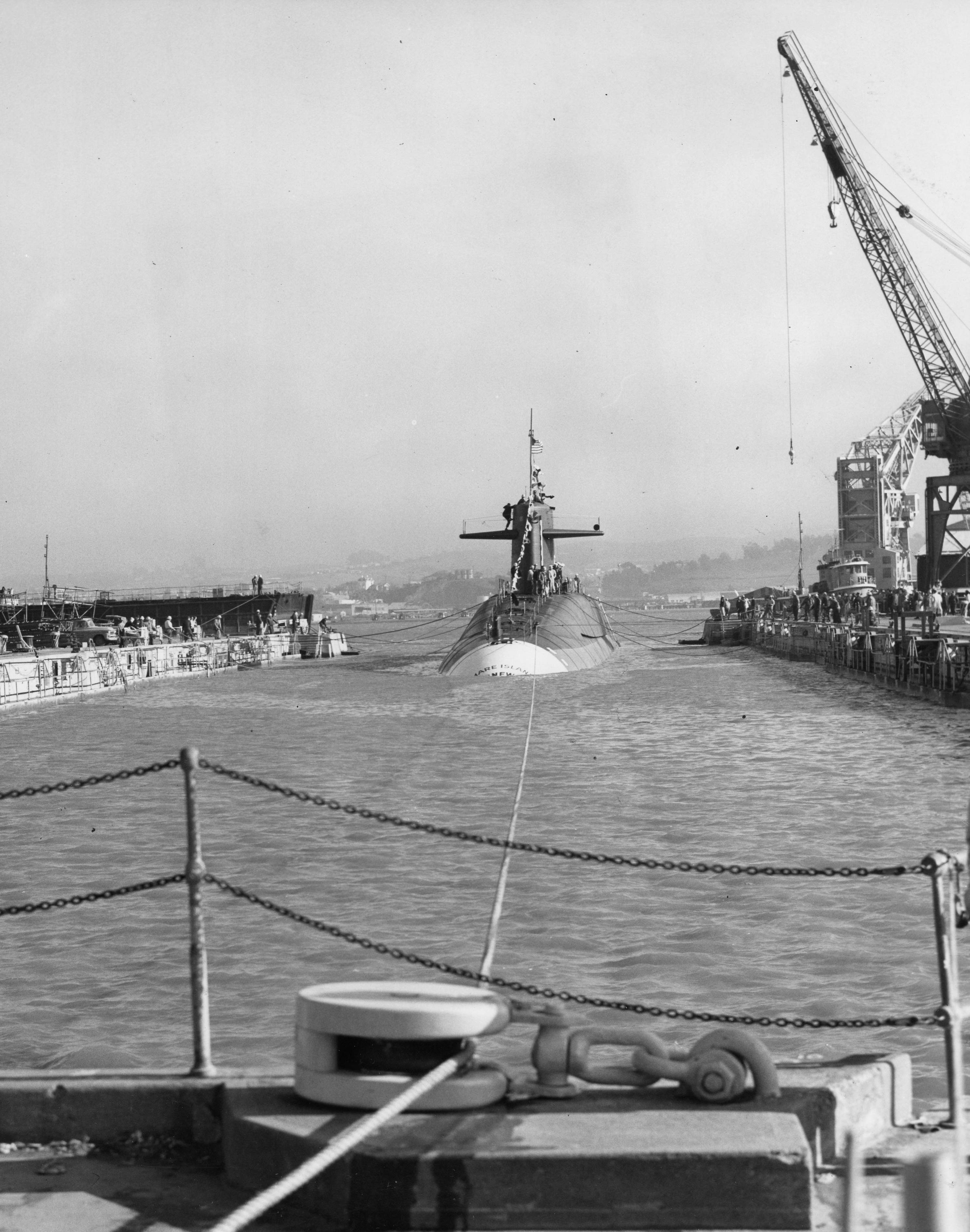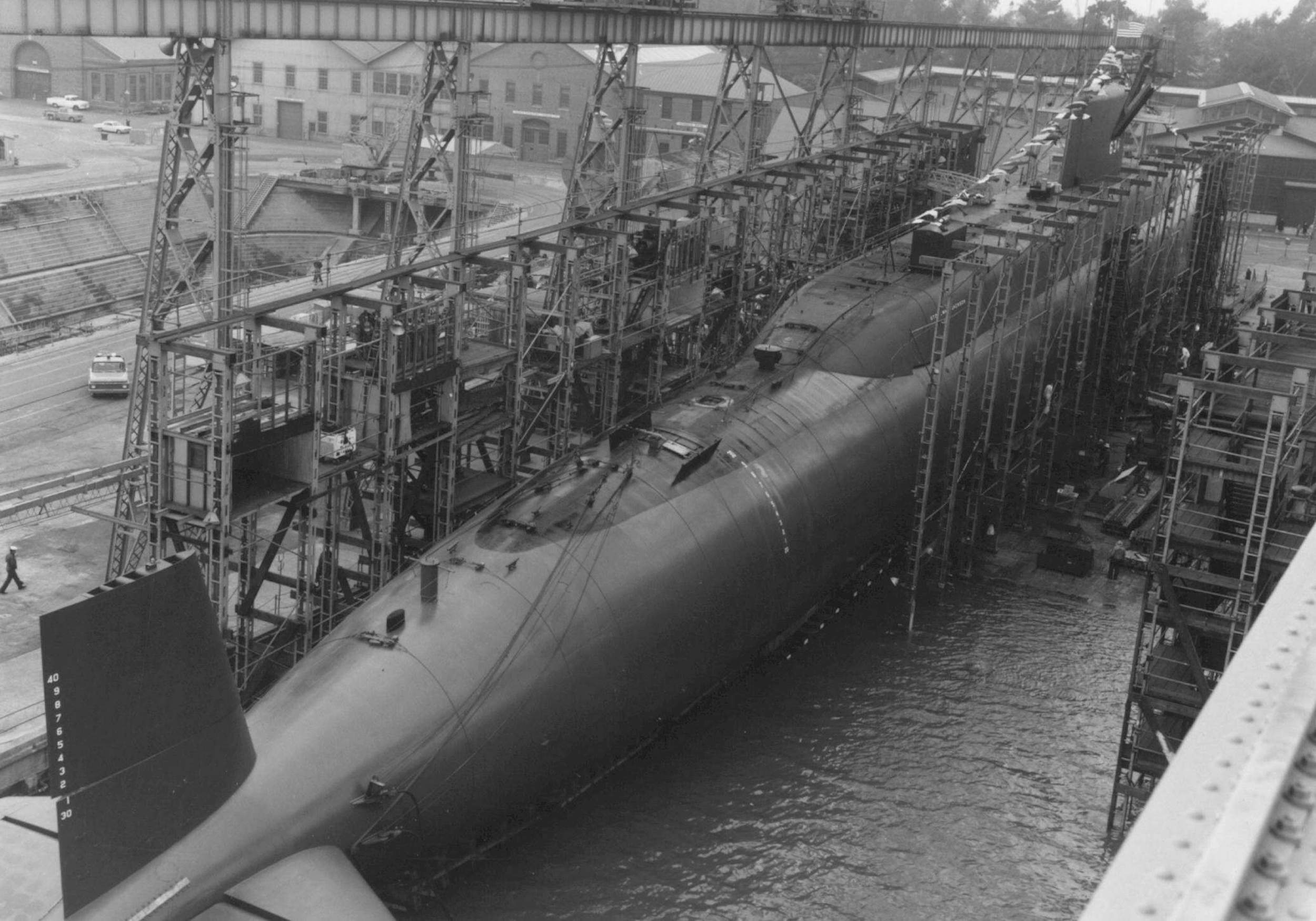![]() | 854k | Stonewall Jackson (SSBN-634) entering dry dock at Mare Island after her launching on 30 November 1963. | Vallejo Naval and Historical Museum photo # 61275-11-63 TH courtesy of Darryl L. Baker. | |