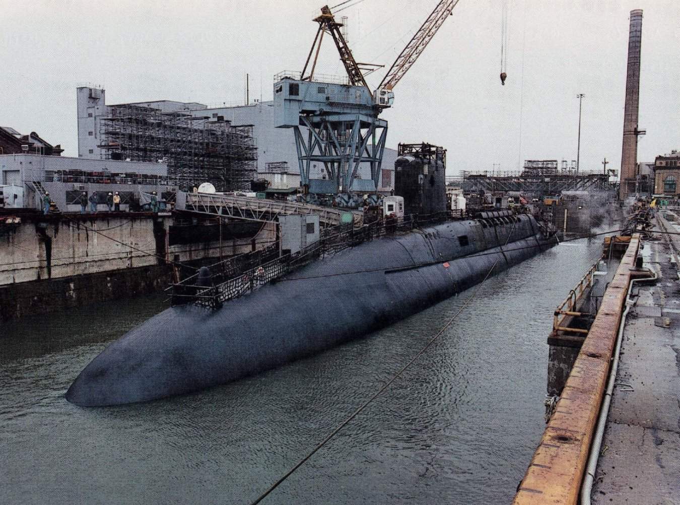 ![]() | 200k | The Stonewall Jackson (SSBN-634) on 29 August 1986 after flooding of drydock 2 at the Charleston Naval Shipyard. The ship had been in the drydock for overhaul since 30 September 1985. We were in the yard until December of 1987. | USN photo courtesy of Lanny W. Cusimano. | |
