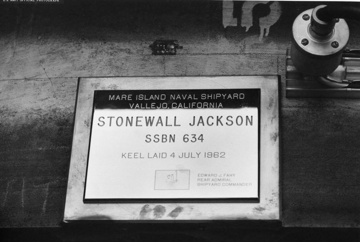 ![]() | 92k | Keel laying plaque on the keel of Stonewall Jackson (SSBN-634) at Mare Island on 4 July 1962. | USN photo # 55532-7-62, courtesy of Darryl L. Baker. | |