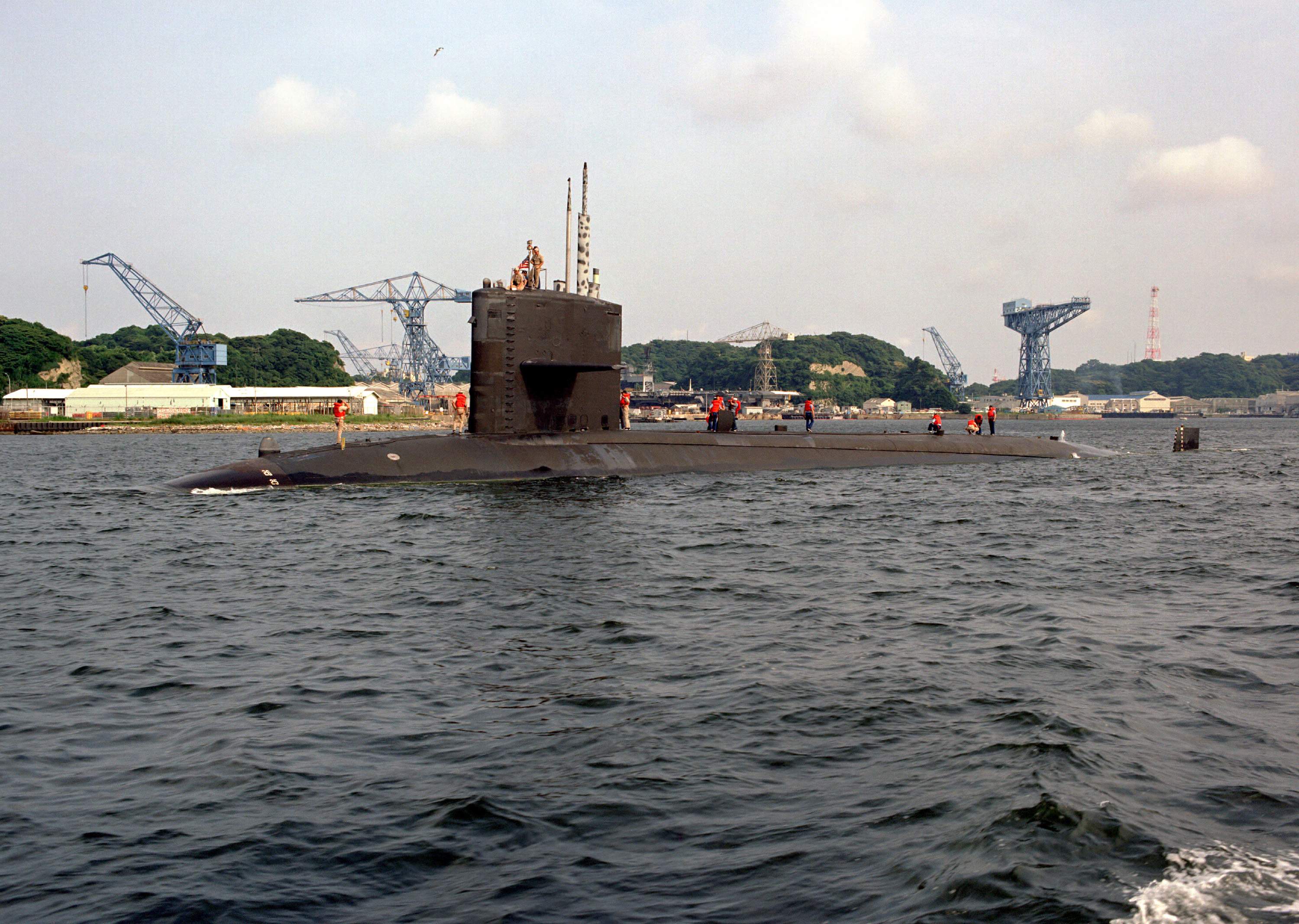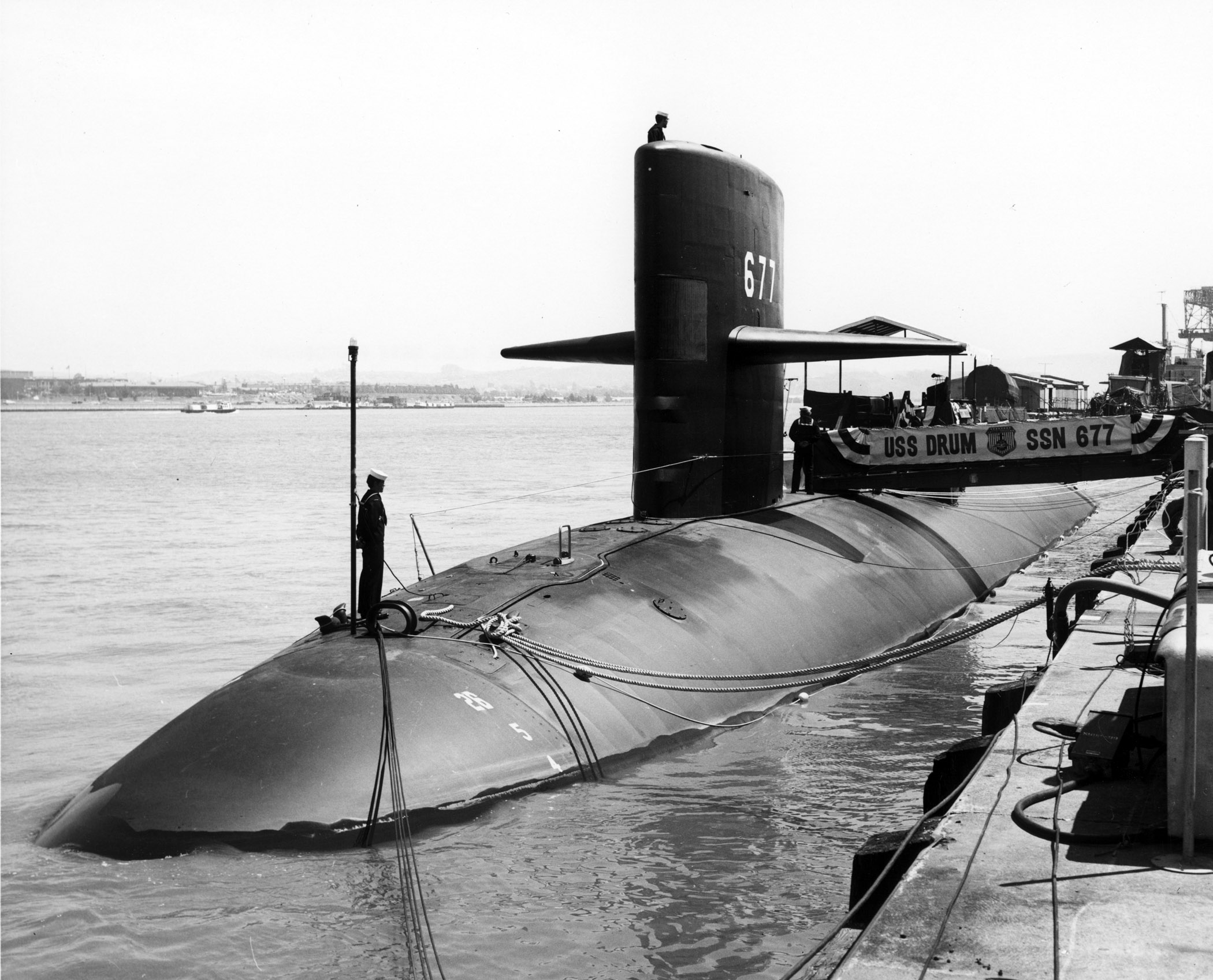 ![]() | 508k | Port bow view of the nuclear-powered attack submarine Drum (SSN-677) entering port on 11 August 1984. | Official USN photo # DN-SC-85-09447 by PHAN John D. Greathouse, USN, from the Department of Defense Still Media Collection, courtesy of dodmedia.osd.mil & submitted by Bill Gonyo. | |