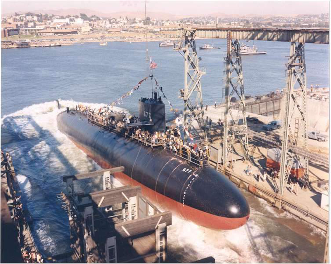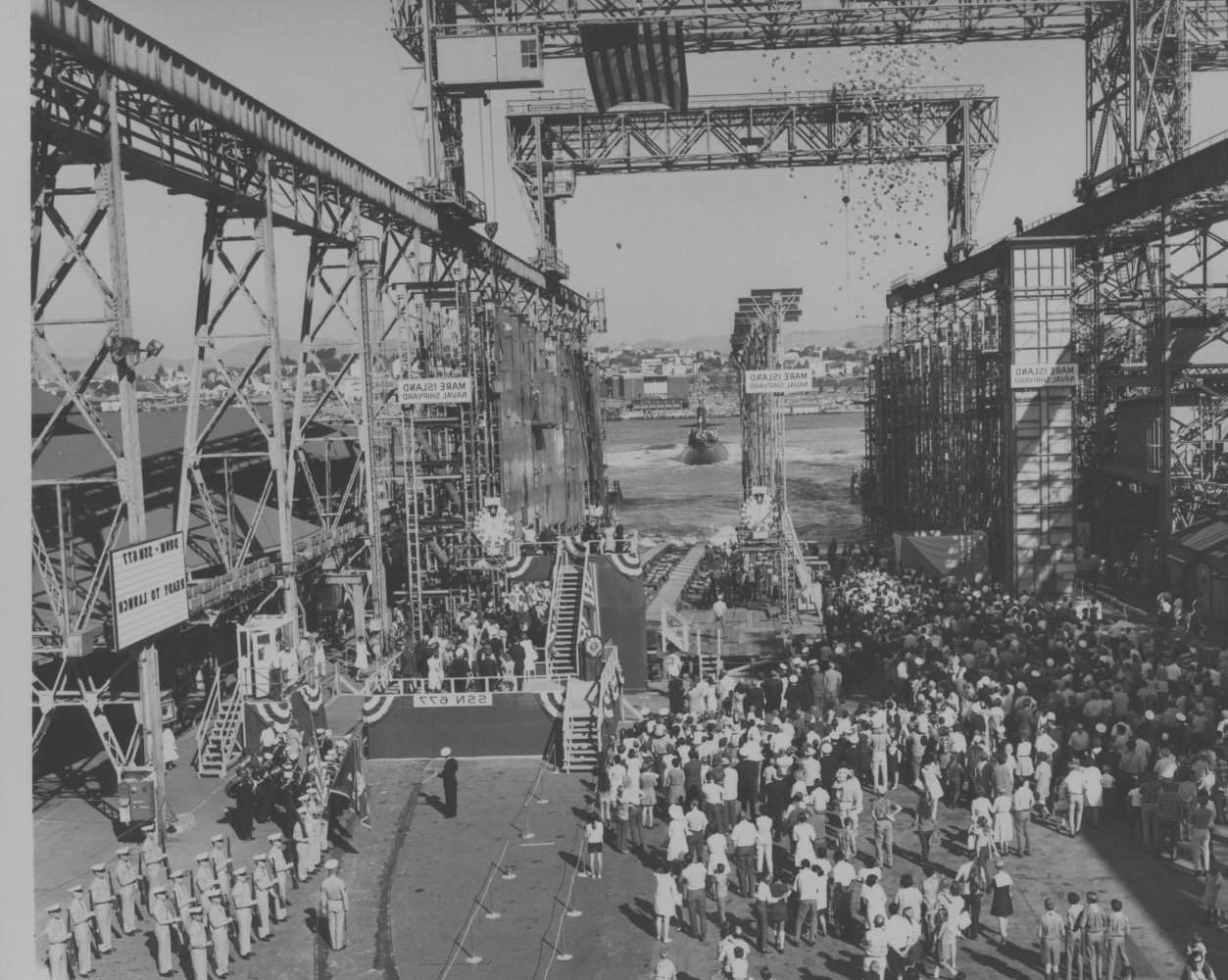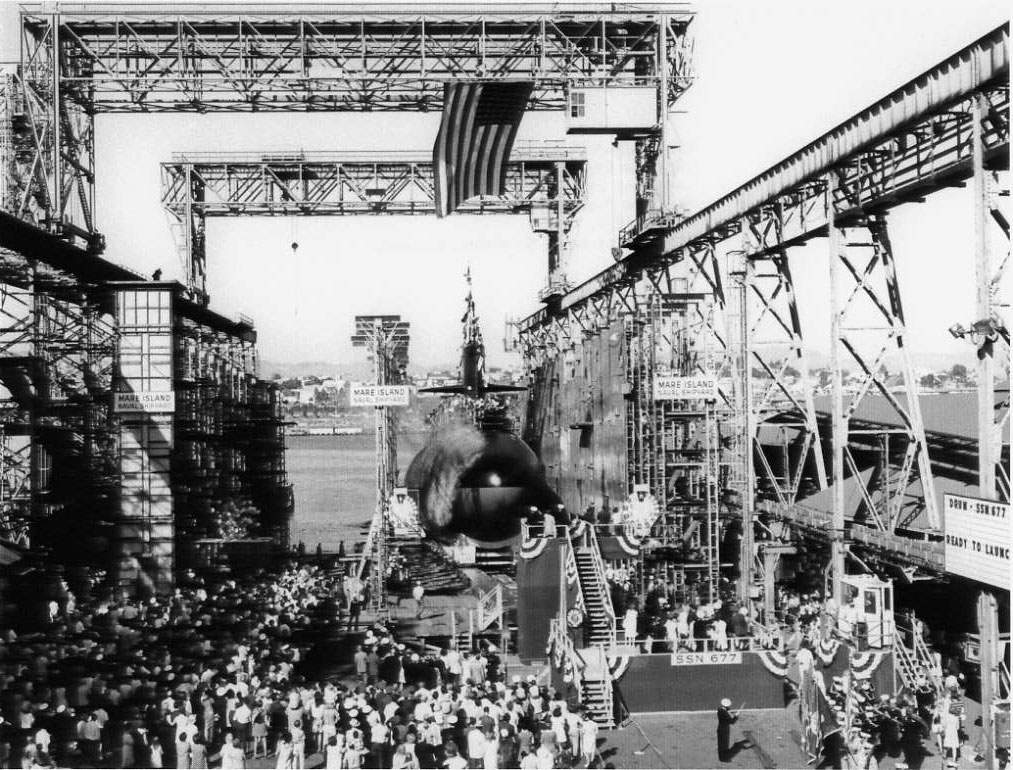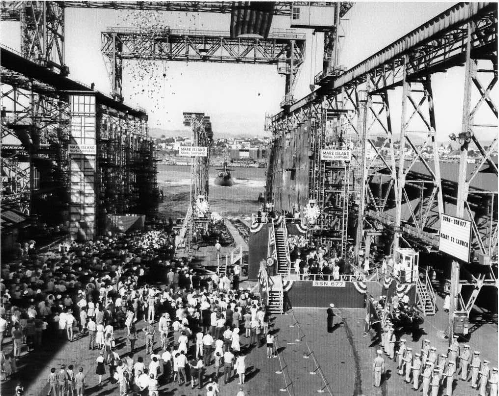 ![]() | 151k | The Drum (SSN-677) has just been christened and started to travel down the building ways at Mare Island on 23 May 1970. | USN photo courtesy of Darryl L. Baker. | |
