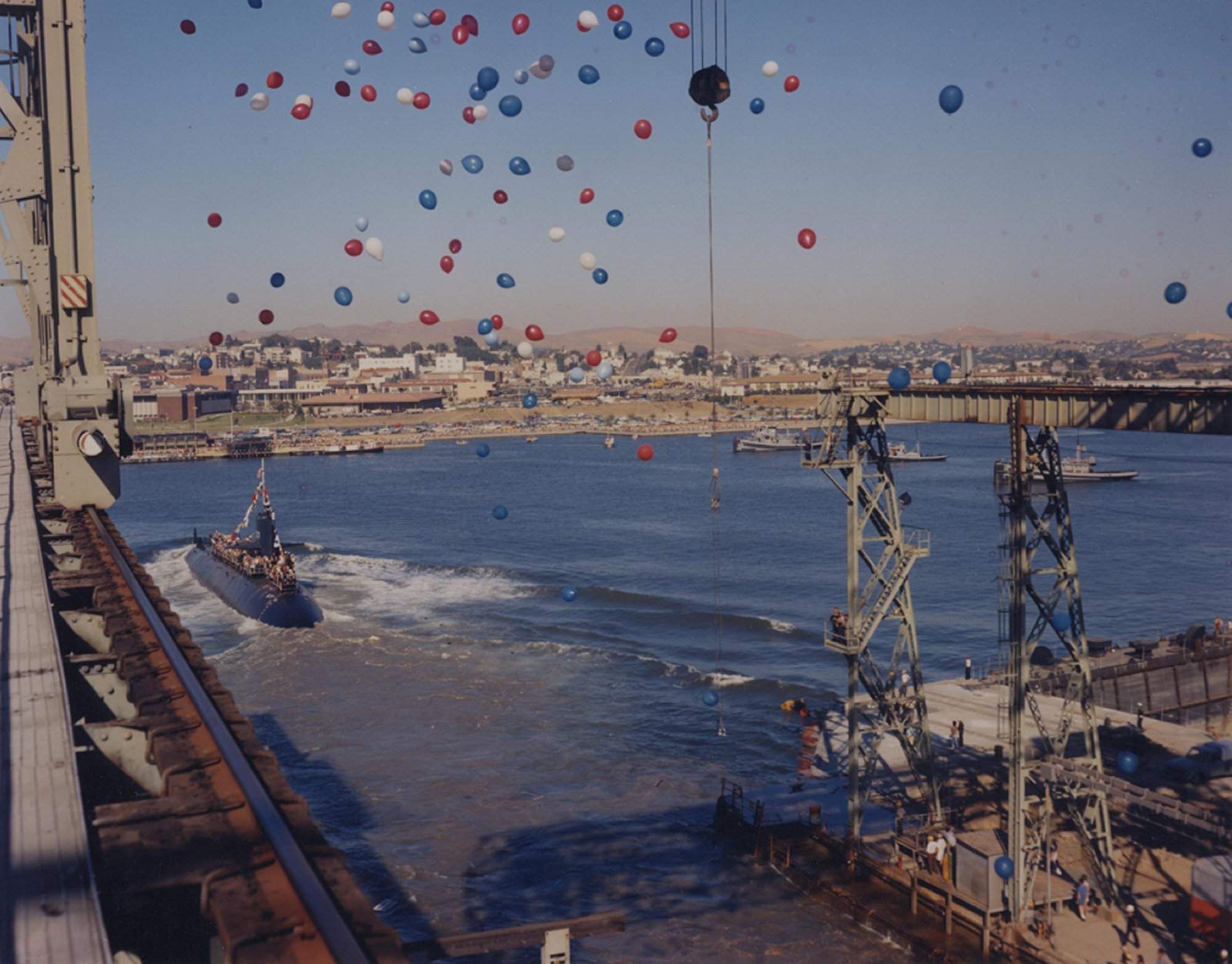 ![]() | 221k | Drum (SSN-677) in mid channel after launching at Mare Island Naval Shipyard on 23 May 1970. | USN photo # 98358-5-70courtesy of Darryl L. Baker. | |