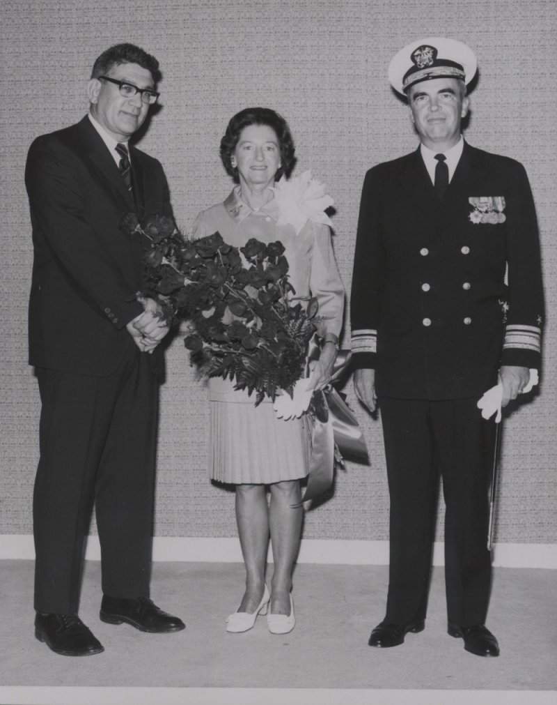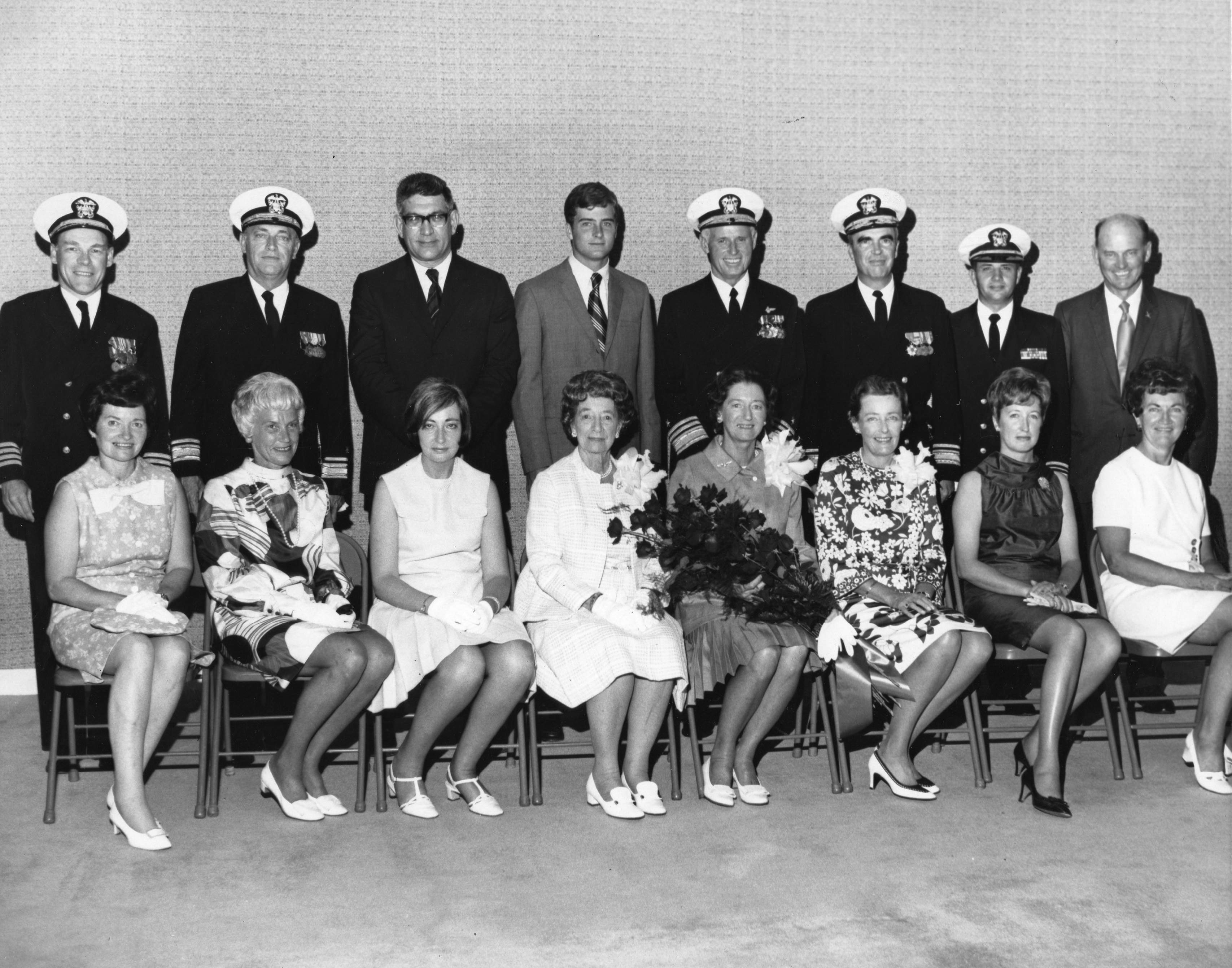 ![]() | 700k | Mrs. William F. Bringle, Ship's Sponsor, (left) and Mrs. Peter Horne, Matron of Honor (right) at the reception for the launching of Drum (SSN-677) at Mare Island on 23 May 1970. | USN photo # 98298-5-70 courtesy of the Vallejo Naval and Historical Museum via Darryl L. Baker. | |