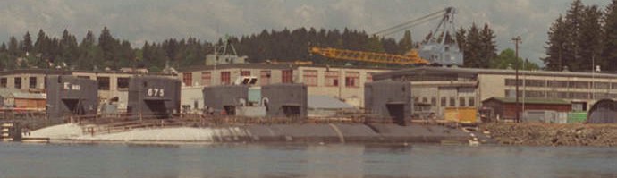 ![]() | 569k | Sealed reactor compartments are shipped by barge out of Puget Sound Naval Base down the coast and along the Columbia River to the port of Benton. There the radioactively-contaminated hull sections are transferred to special multiwheeled high-load trailers for transport to the Hanford Reservation in Washington State. Pictured below is the burial ground for spent fuel of the following 77 nuclear reactor submarines as of March 2003: Patrick Henry (SSBN-599), Snook (SSN-592), George Washington (SSBN-598), Scamp (SSN-588), Robert E. Lee (SSBN-601), Thomas Jefferson (SSBN-618), Theodore Roosevelt (SSBN-600), Dace (SSN-607), John Adams (SSBN-620), Abraham Lincoln (SSBN-602), Barb (SSN-596), Ethan Allen (SSBN-608), Thomas A. Edison (SSBN-610), Pollack (SSN-603), Glenard P. Lipscomb (SSN-685), James Monroe (SSBN-622), Skipjack (SS-585), Nathan Hale (SSBN-623), Plunger (SSN-595), Shark (SSN-591), Lafayette (SSBN-616), Sam Houston (SSBN-609), Jack (SSN-605), Haddo (SSN-604), Tinosa (SSN-606), Guardfish (SSN-612), Permit (SSN-594), Queenfish (SSN-651), Ulysses S. Grant (SSBN-631), John Marshall (SSBN-611), George C. Marshall (SSBN-654), Flasher (SSN-613), Guitarro (SSN-665), Alexander Hamilton (SSBN-617), George Washington Carver (SSBN-656), Tecumseh (SSBN-628), Halibut (SSGN-587), Will Rogers (SSBN-659), Henry L. Stimson (SSBN-655), Daniel Boone (SSBN-629), Greenling (SSN-614), John C. Calhoun (SSBN-630), Casimir Pulaski (SSBN-633), Skate (SSN-578), Sargo (SSN-583), Francis Scott Key (SSBN-657), Sturgeon (SSN-637), Benjamin Franklin (SSBN-640), Swordfish (SSN-579), Seadragon (SSN-584), Stonewall Jackson (SSBN-634), Simon Bolivar (SSBN-641), Hammerhead (SSN-663), Mariano G. Vallejo (SSBN-658) , Tullibee (SSN-597), Lewis & Clark (SSBN-644), Pargo (SSN-650), Seahorse (SSN-669), Gurnard (SSN-662), Flying Fish (SSN-673), Gato (SSN-615), Puffer (SSN-652), Seawolf (SSN-575), Baton Rouge (SSN-689), Bergall (SSN-667), Whale (SSN-638), Henry Clay (SSBN-625), James Madison (SSBN-627), Finback (SSN-670), Spadefish (SSN-668), Sunfish (SSN-649), George Bancroft (SSBN-643), Grayling (SSN-646), Pintado (SSN-672), Tunny (SSN-682), Archerfish (SSN-678), & Woodrow Wilson (SSBN-624). As time passes & more boats are retired from service and their reactors are brought here, so the numbers rise. In this photo dated November 2009, 98 nuclear submarines and six nuclear cruisers have been recycled. For an up to date view, click here | USN photo submitted by Jack Treutle (of blessed memory). Insert link courtesy of wikimedia.org |