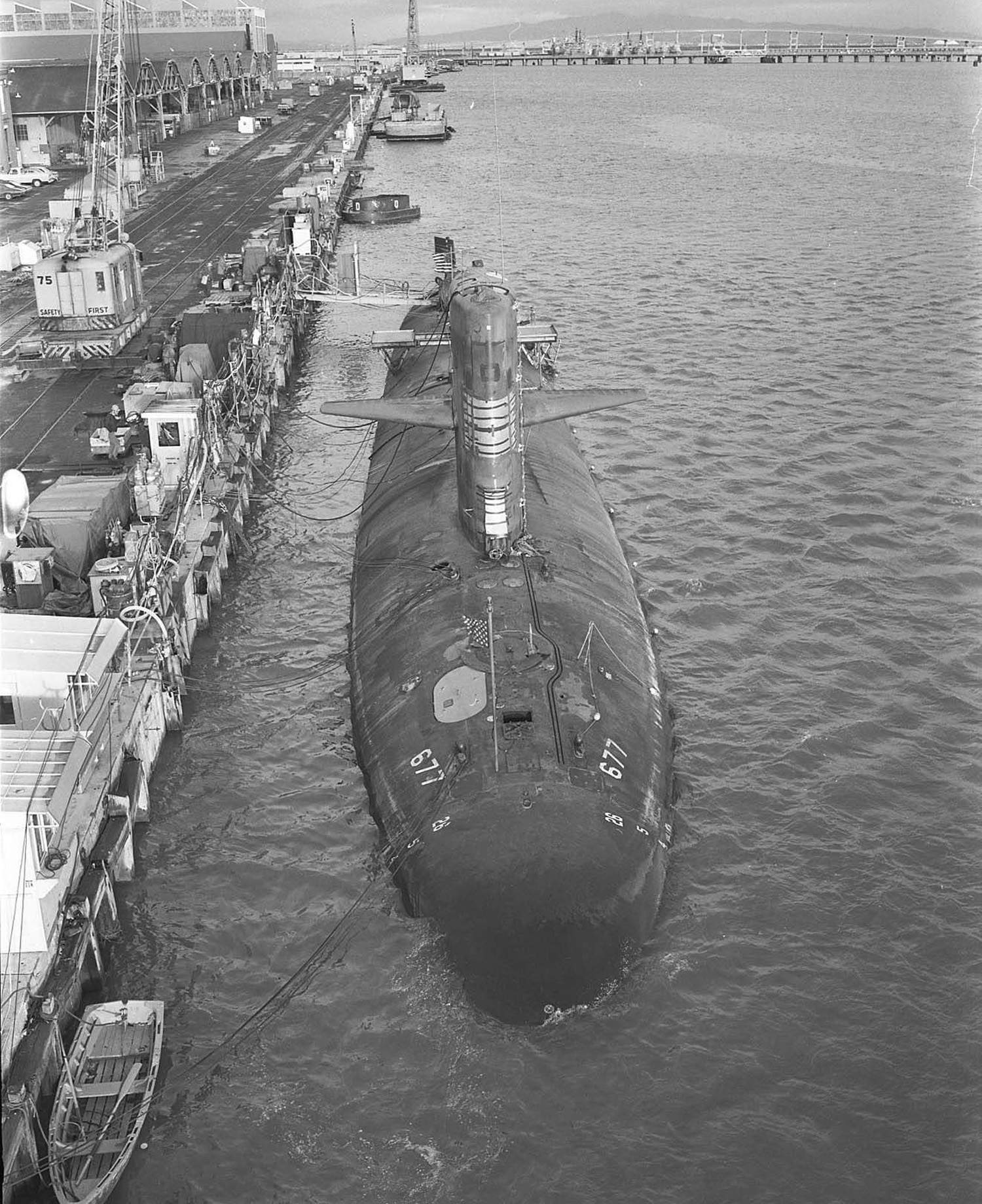 ![]() | 161k | The Drum (SSN-677) is waterborne for the first time at Mare Island on 23 May 1970. | USN photo courtesy of Darryl L. Baker. | |