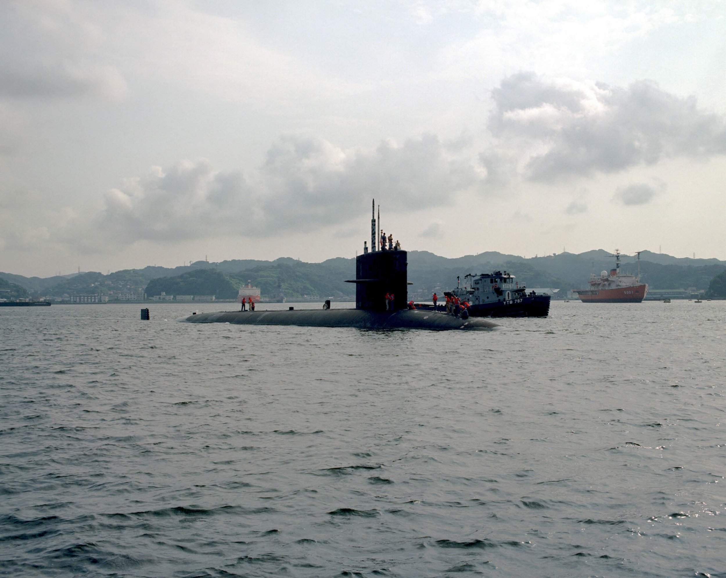 ![]() | 314k | Starboard bow view of the nuclear-powered attack submarine Drum (SSN-677) entering port accompanied by the large harbor tug Kittanning (YTB-787) on 11 August 1984. The Japanese Antarctic support ship Fuji (AB-5001) is in the background. | Official USN photo # DN-SC-85-09445 by PHAN John D. Greathouse, USN, from the Department of Defense Still Media Collection, courtesy of dodmedia.osd.mil & submitted by Bill Gonyo. | |