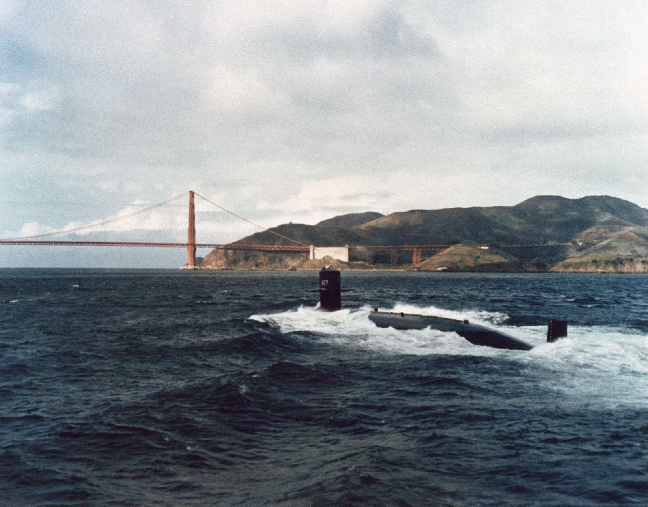 ![]() | 425k | A port quarter view of the nuclear-powered attack submarine Drum (SSN-677) underway on 4 January 1984 passing under the Golden Gate Bridge. | Official USN photo # DN-SC-84-04128 from the Department of Defense Still Media Collection, courtesy of dodmedia.osd.mil & submitted by Bill Gonyo. | |