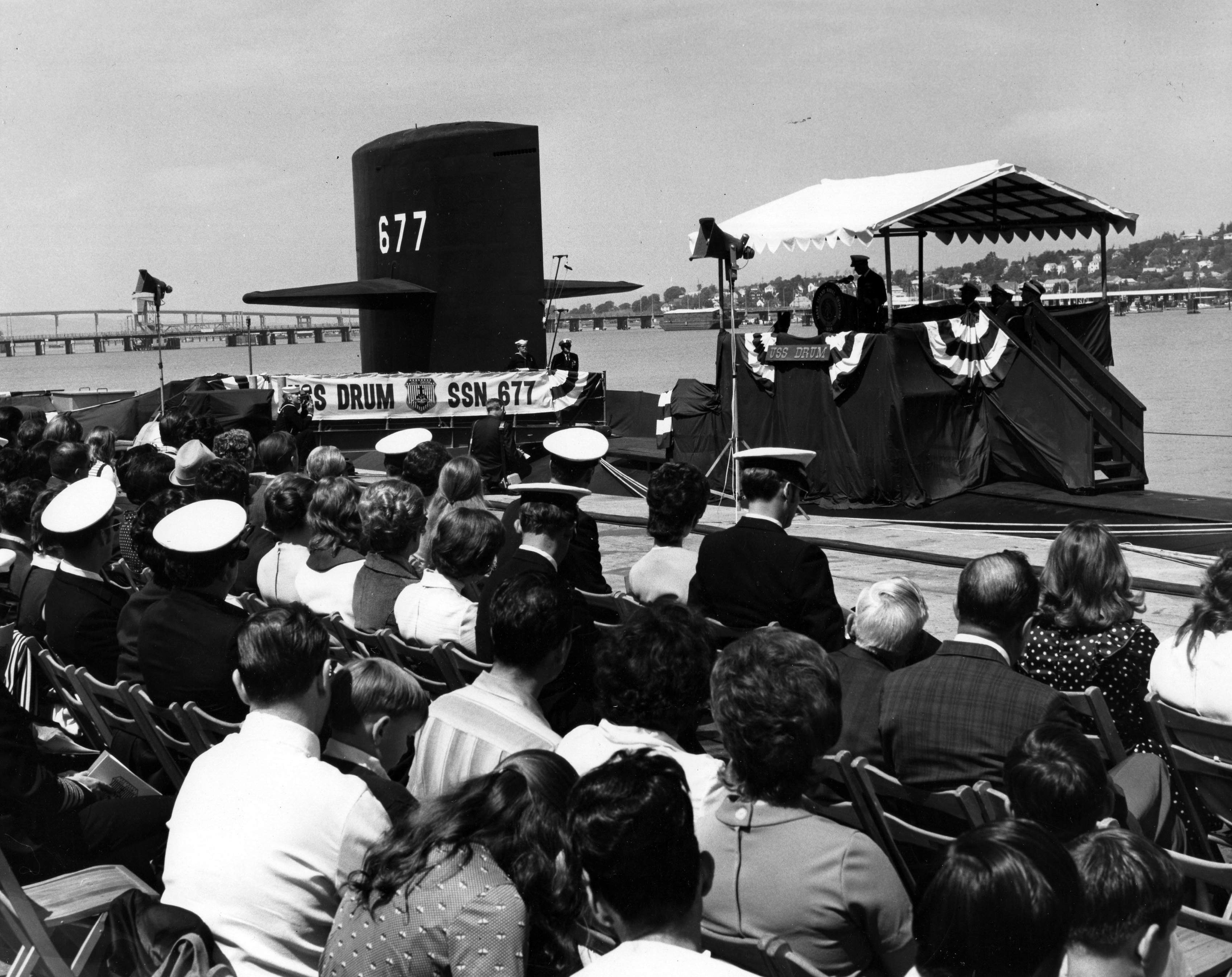 ![]() | 744k | A view of the commissioning ceremonies of the Drum (SSN-677) at Mare Island on 15 April 1972. | USN photo # 110101-4-72 courtesy of the Vallejo Naval and Historical Museum via Darryl L. Baker. | |