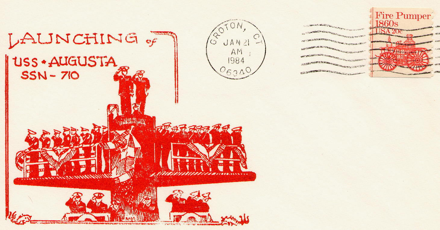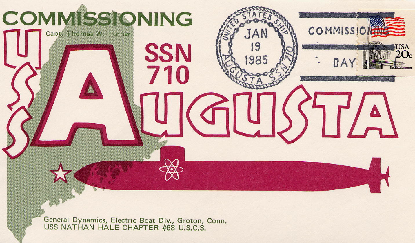 ![]() | 31k | Commemorative post mark on the occasion of the commissioning of the Augusta (SSN-710), 19 January 1985. | Courtesy of Jack Treutle (of blessed memory). | |