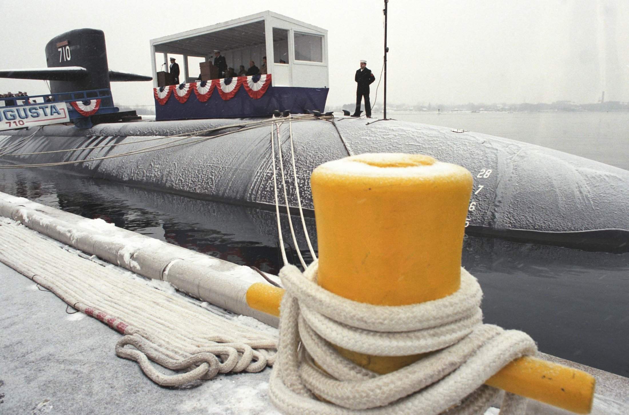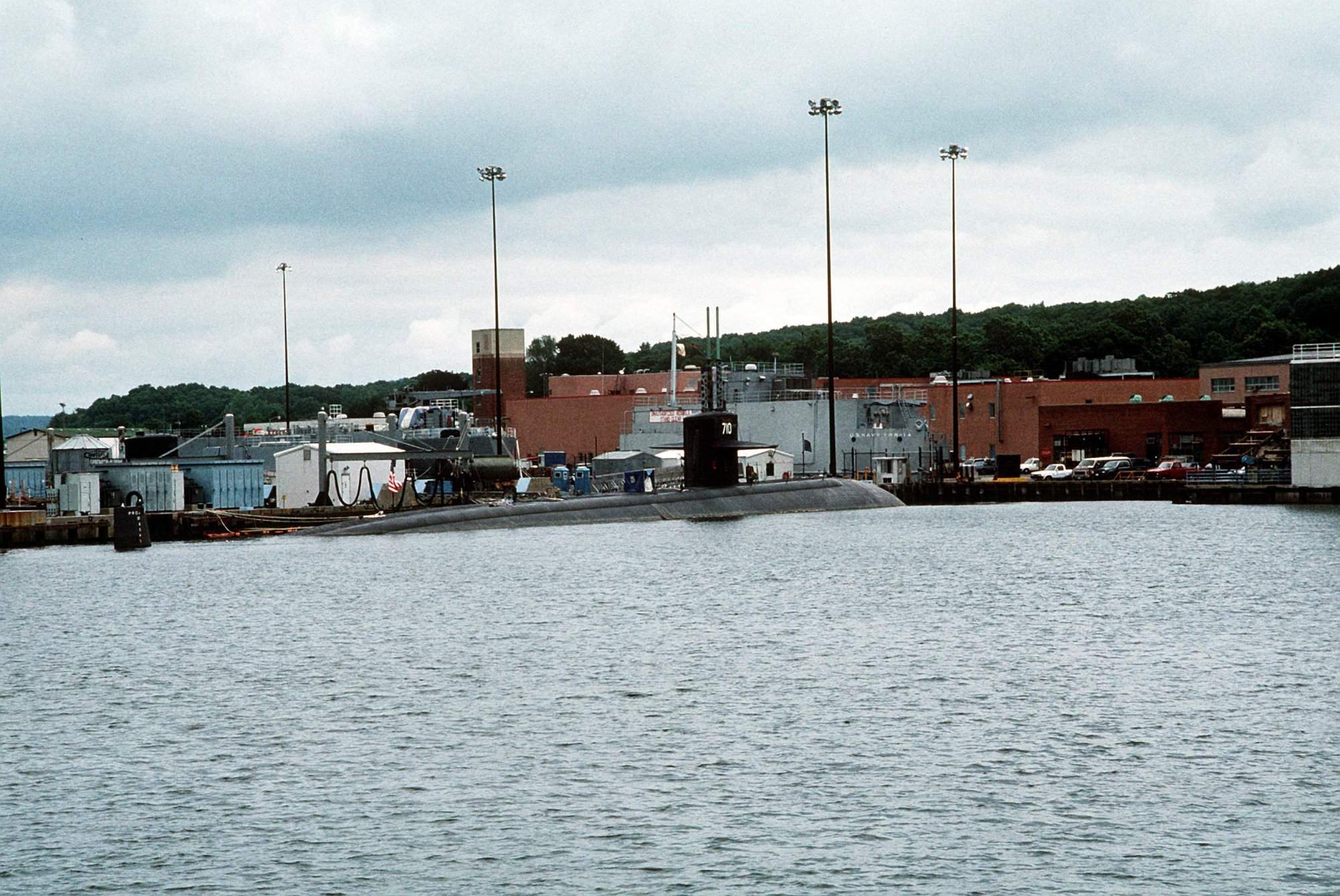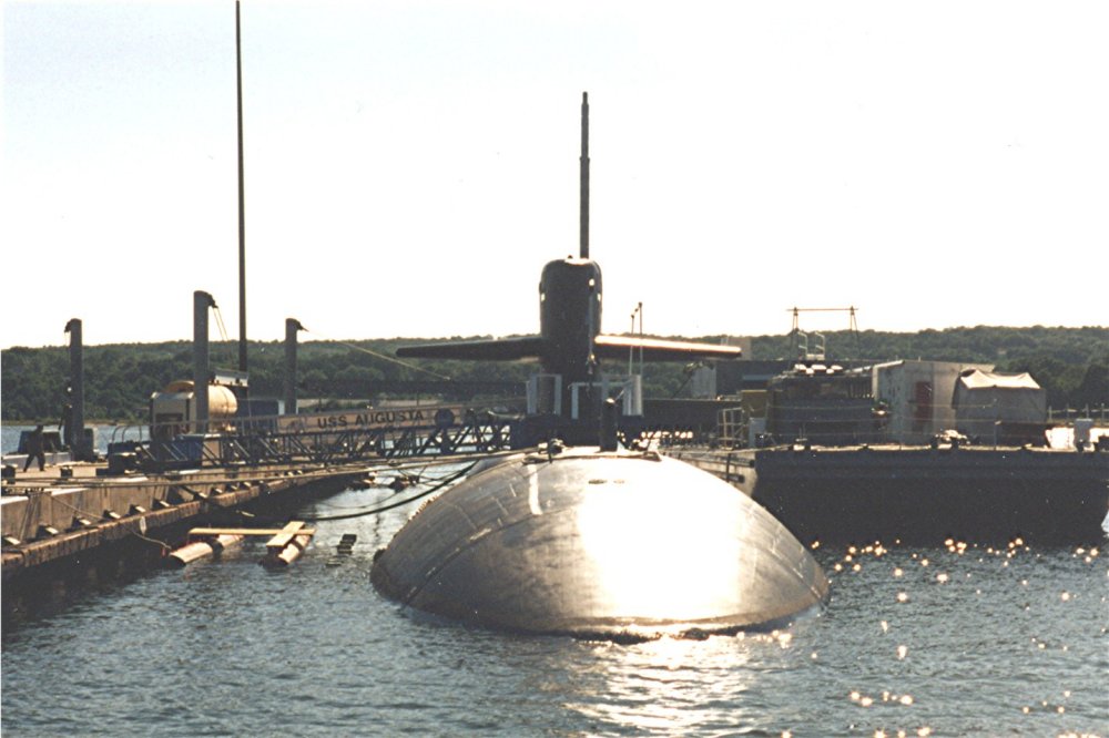 ![]() | 694k | A port view of the Los Angeles class nuclear-powered attack submarine Augusta (SSN-710) tied up at a pier at the New London CT., sub base on 14 July 1991. | Official USN photo # DN-ST-92-04181, by Don S. Montgomery, from the Department of Defense Still Media Collection, courtesy of dodmedia.osd.mil. | |
