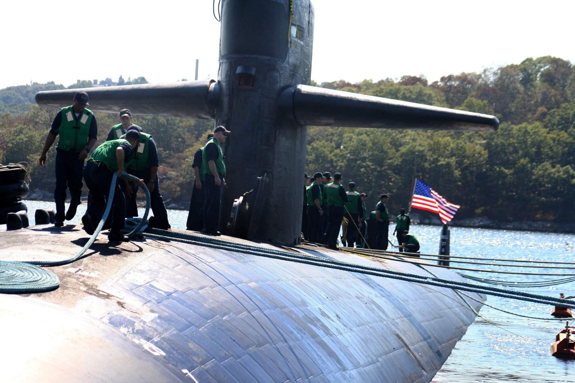 ![]() | 704k | Sailors aboard the Los Angeles class attack submarine Augusta (SSN-710) work together to moor their submarine to the pier. Augusta arrived home 8 September 2005 to Submarine Base New London, Conn., after a routine six-month deployment to the Mediterranean Sea supporting the Global War on Terrorism. | USN photo # N-0653J-003 by Lt. Mark Jones, courtesy of news.navy.mil. | |