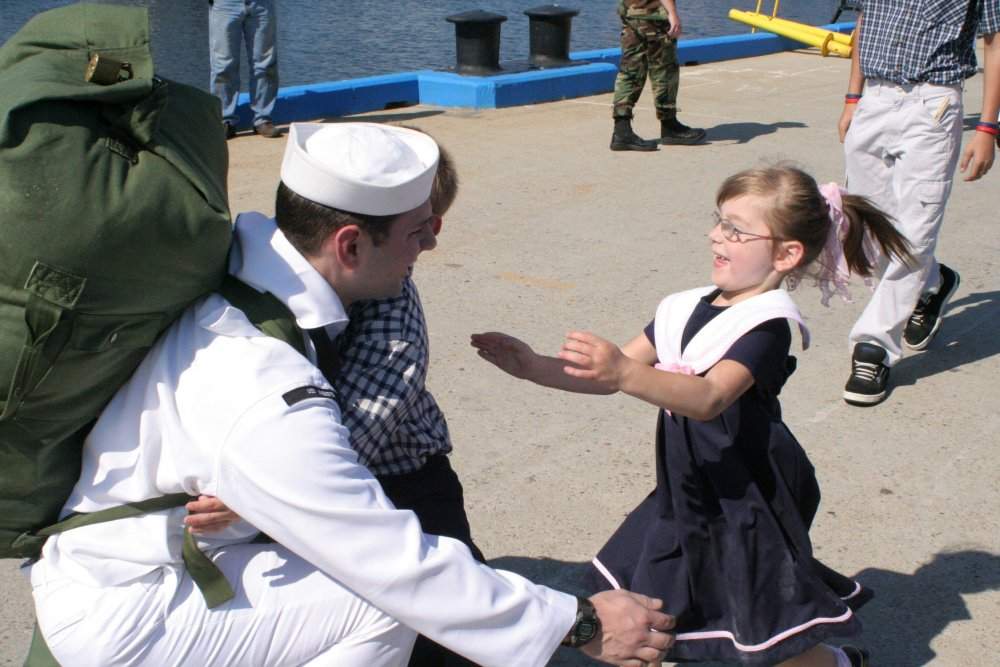 ![]() | 74k | A Sailor assigned to the Los Angeles class attack submarine Augusta (SSN-710) welcomes family members on the pier after returning home from deployment. | USN photo # N-0653J-004 by Lt. Mark Jones, courtesy of news.navy.mil. | |