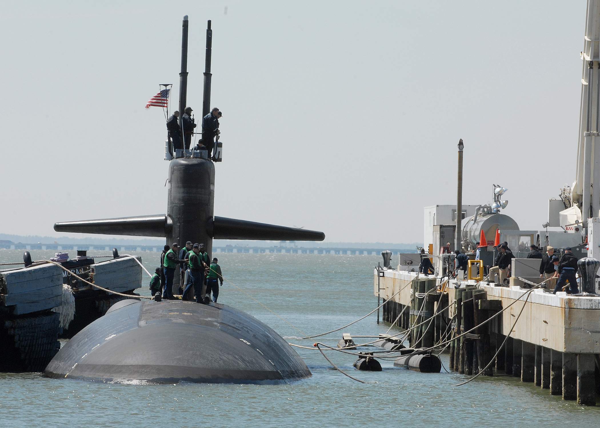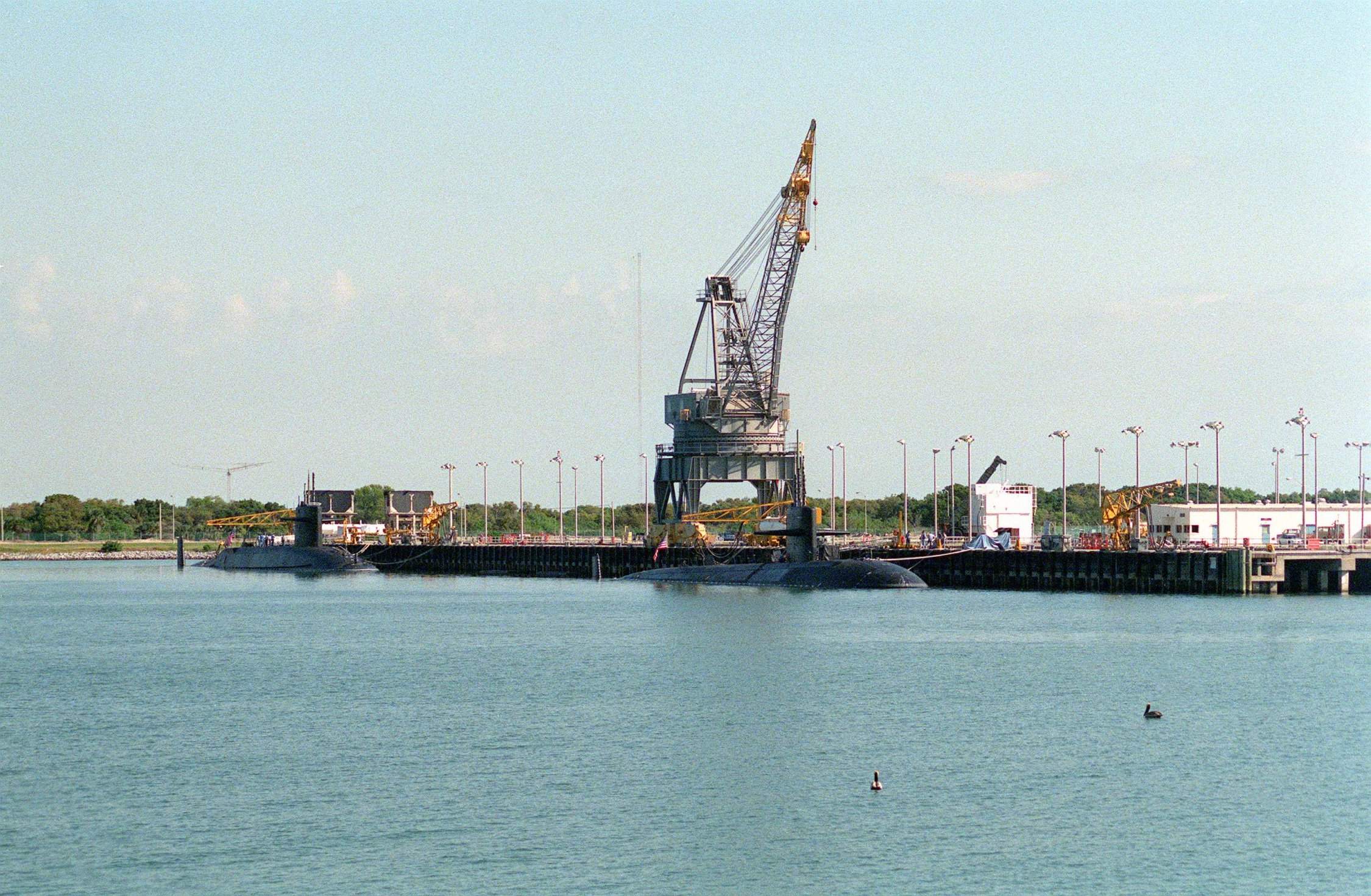 ![]() | 441k | A view of the nuclear-powered ballistic missile submarine Stonewall Jackson (SSBN-634), (left), and the nuclear-powered attack submarine Augusta (SSN-710) tied up at the Trident pier at Port Canaveral, Florida, on 13 March 1994. | Official USN photo # DN-SC-95-00045 by OS2 John Bouvia, from the Department of Defense Still Media Collection, courtesy of dodmedia.osd.mil. | |