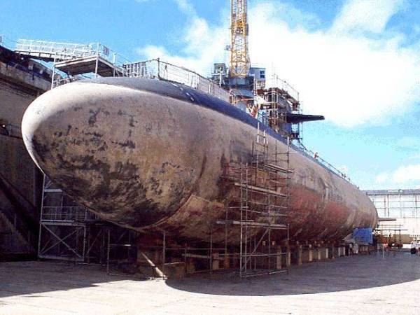 ![]() | 154k | The attack submarine San Francisco (SSN-711) is shown in dry dock having repairs made on its damaged bow. | USN photo # N-0000X-002 courtesy of news.navy.mil. | |