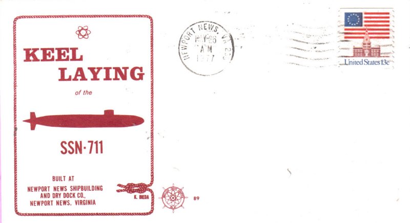 ![]() | 39k | Commemorative post mark on the occasion of the San Francisco's (SSN-711) keel laying, postmarked Newport News, Virginia on 26 May 1977. | Courtesy of Jack Treutle (of blessed memory). | |