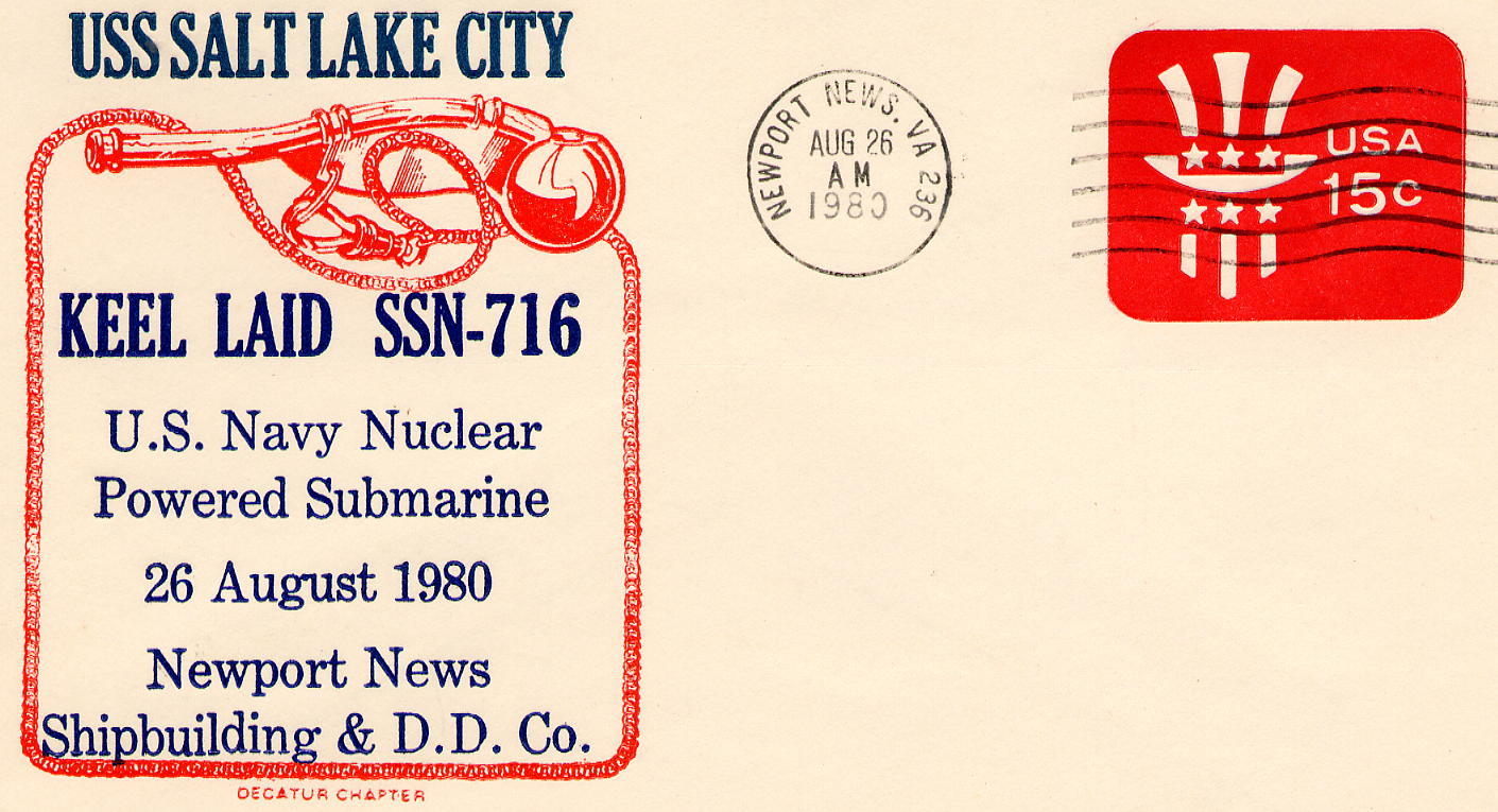225k | Salt Lake City (SSN-716) keel cachet on 26 August 1980. | USN photo courtesy of Scott Koen & ussnewyork.com. | |