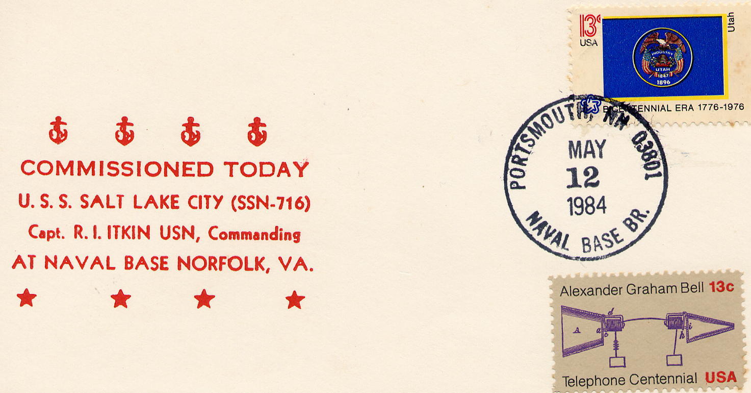 179k | Salt Lake City (SSN-716) commissioning cachet on 12 May 1984. | USN photo courtesy of Scott Koen & ussnewyork.com. | |
