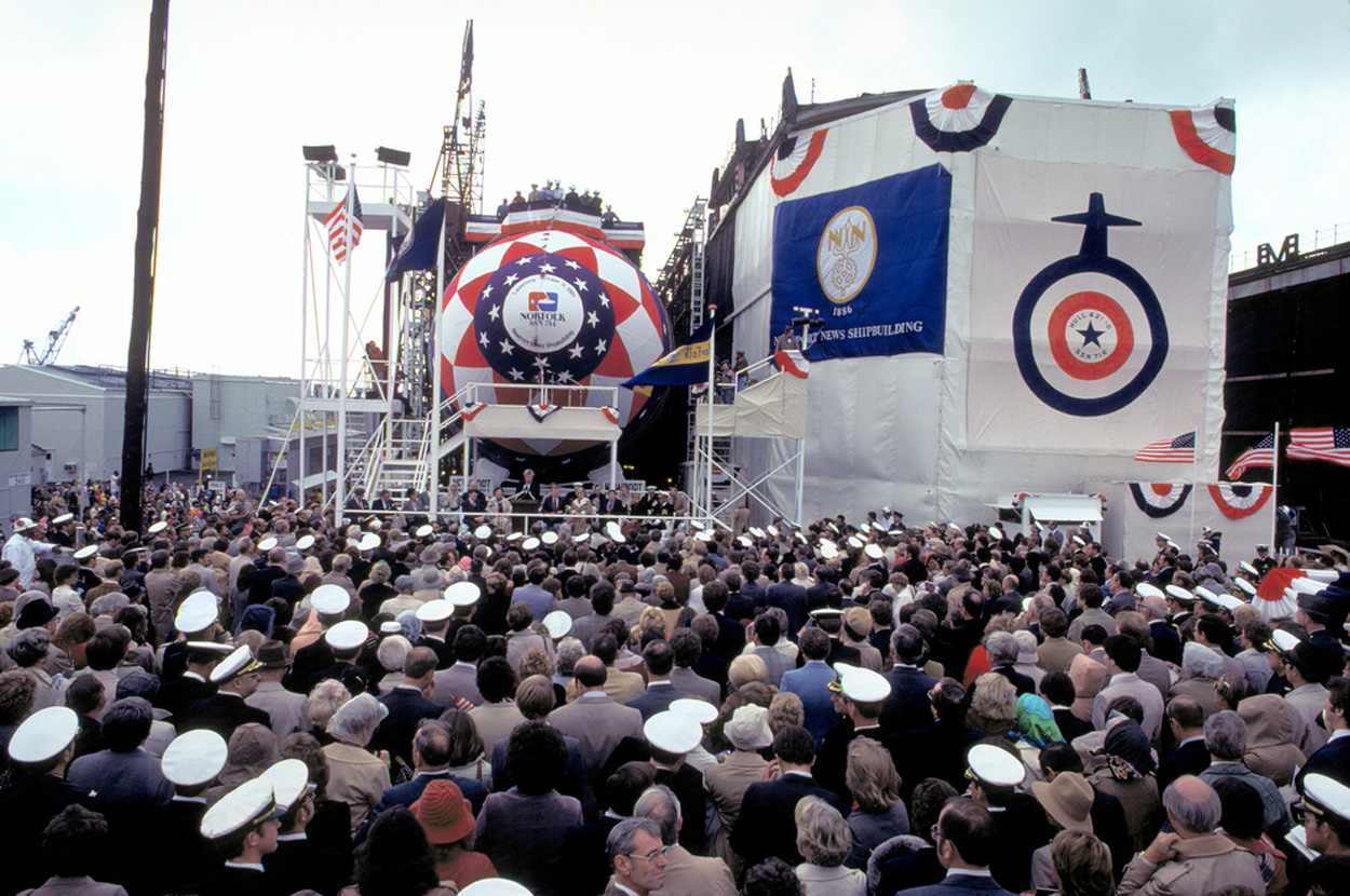 ![]() | 452k | Launching ceremony for the Norfolk (SSN-714). On the right is the Salt Lake City (SSN-716), 3 October 1981. | Photo courtesy of Dale Hargrave. | |