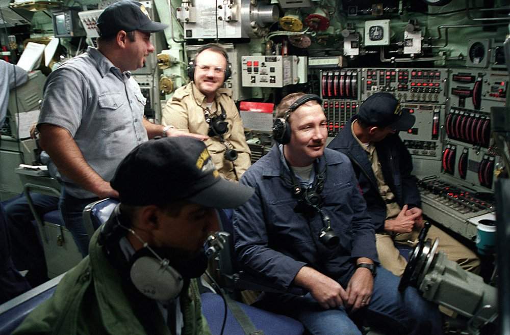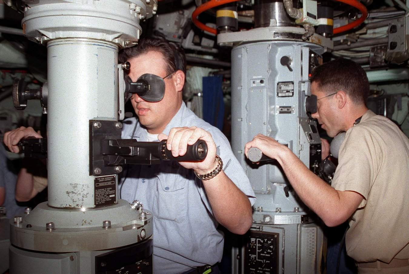 ![]() | 146k | Both enlisted and commissioned sailors pull duty in the control room of the Salt Lake City (SSN-716). During maneuvering operations they keep a watchful eye, through periscopes, on the busy shipping lanes near this California city as they participate in the joint military exercise Global Guardian '98, on 29 October 1997. | USN photo # DN-SD-99-05752, by PH2 (NAC) H. Wolfgang Porter, from the Department of Defense Still Media Collection, courtesy of dodmedia.osd.mil. | |