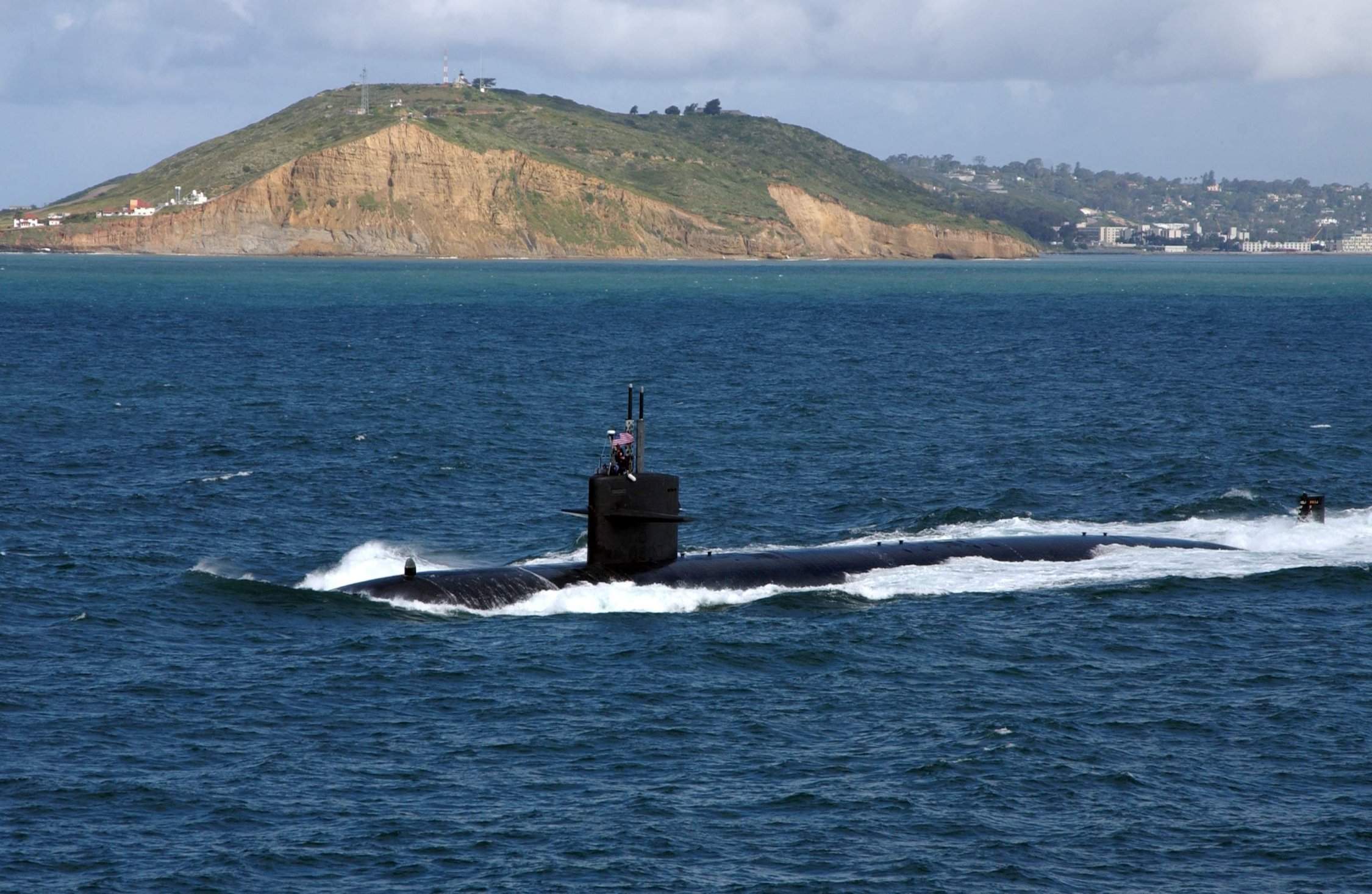 ![]() | 328k | Port side view of the Los Angeles class fast attack submarine Salt Lake City (SSN-716) underway 23 March 2005, after departing Naval Submarine Base Point Loma, Calif., to conduct routine exercises in the Pacific Ocean. | USN photo # N-7615S-039, by Photographer's Mate 3rd Class Danielle M. Sosa courtesy of news.navy.mil. | |