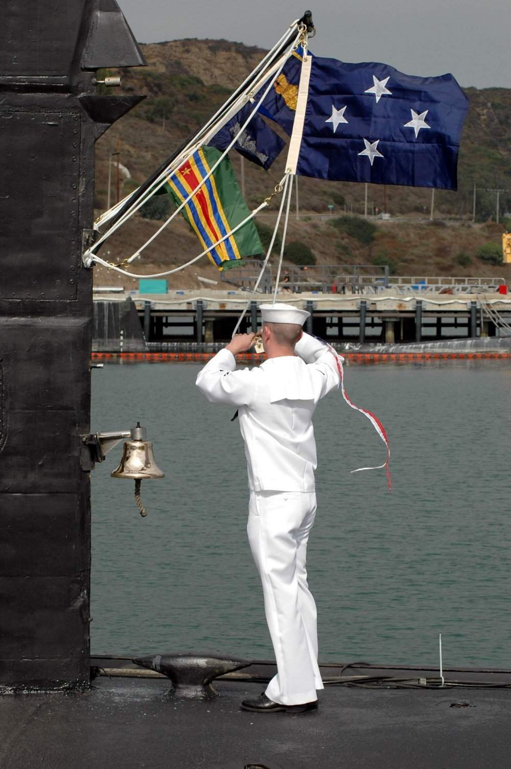 ![]() | 140k | Electronics Technician 2nd Class Brian Condon hauls down the commissioning pennant for the Los Angeles class fast attack submarine Salt Lake City (SSN-716) during its inactivation ceremony held on board Naval Base Point Loma, 26 October 2005. Salt Lake City was launched on 16 October 1982 and commissioned on 12 May 1984. | USN photo # N-1577S-055, by Photographer's Mate 3rd Class Timothy F. Sosa, courtesy of news.navy.mil. | |