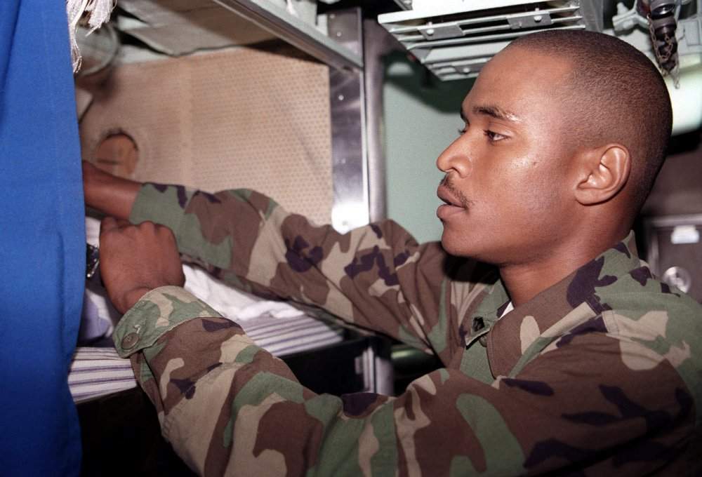 ![]() | 63k | Fire Control Technician Third Class (SS) Roberto A. Baptiste grabs his gear on board the Salt Lake City (SSN-716) as he prepares to stand watch pier side during the joint military exercise Global Guardian '98. | USN photo # DN-SD-99-05751, by PH2 (NAC) H. Wolfgang Porter, from the Department of Defense Still Media Collection, courtesy of dodmedia.osd.mil. & submitted by Bill Gonyo. | |