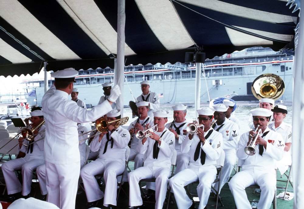 ![]() | 91k | The Commander in Chief US Atlantic Fleet Band performs during the commissioning ceremony for the nuclear-powered attack submarine Salt Lake City (SSN-716). | USN photo # DN-ST-84-09319, by PH2 Wujcik, from the Department of Defense Still Media Collection, courtesy of dodmedia.osd.mil. | |