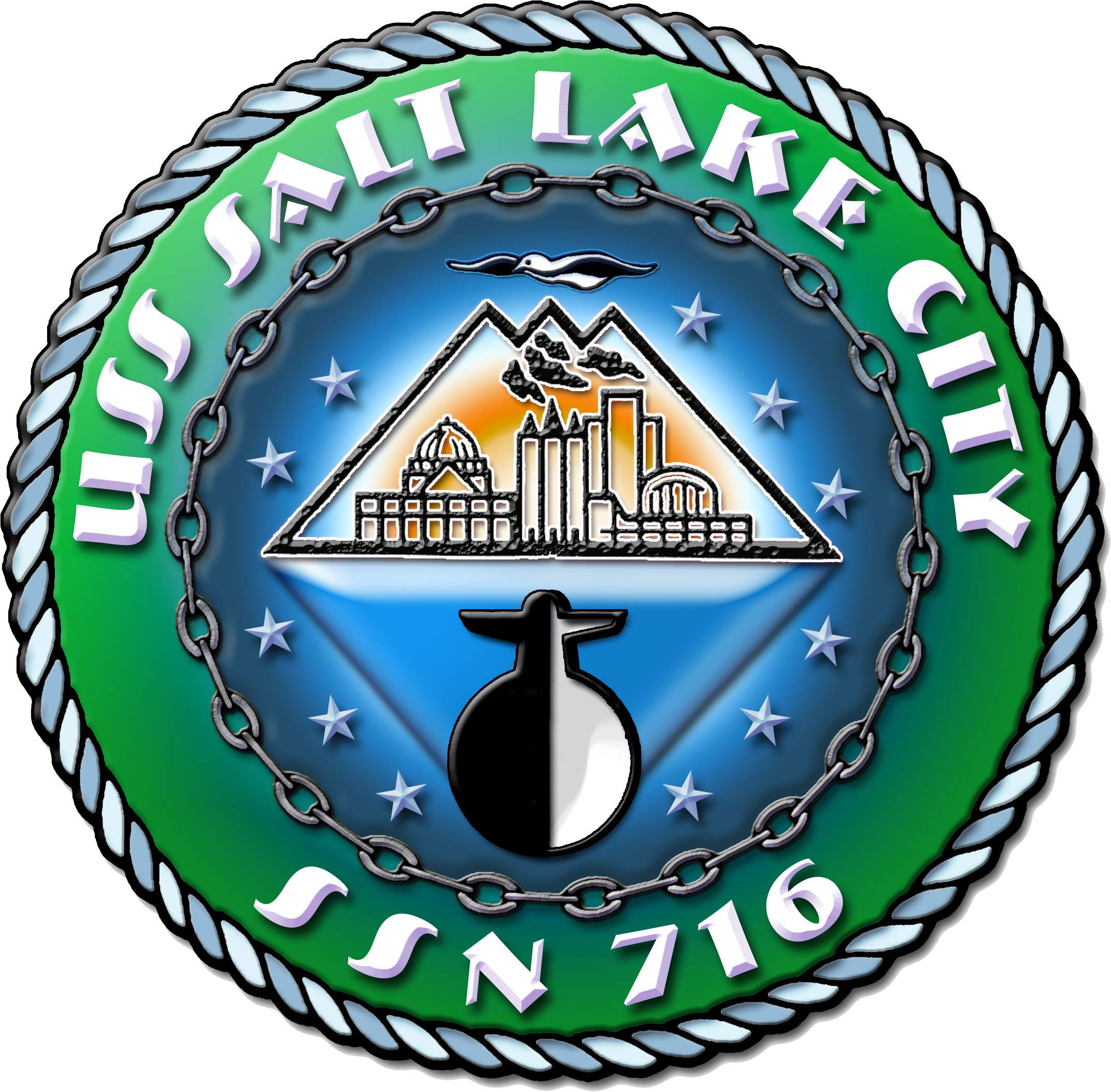 ![]() | 36k | Commemorative patch issued on the occasion of Salt Lake City's (SSN-716) 2000 West Pac tour. | Courtesy of Jack Treutle (of blessed memory). | |