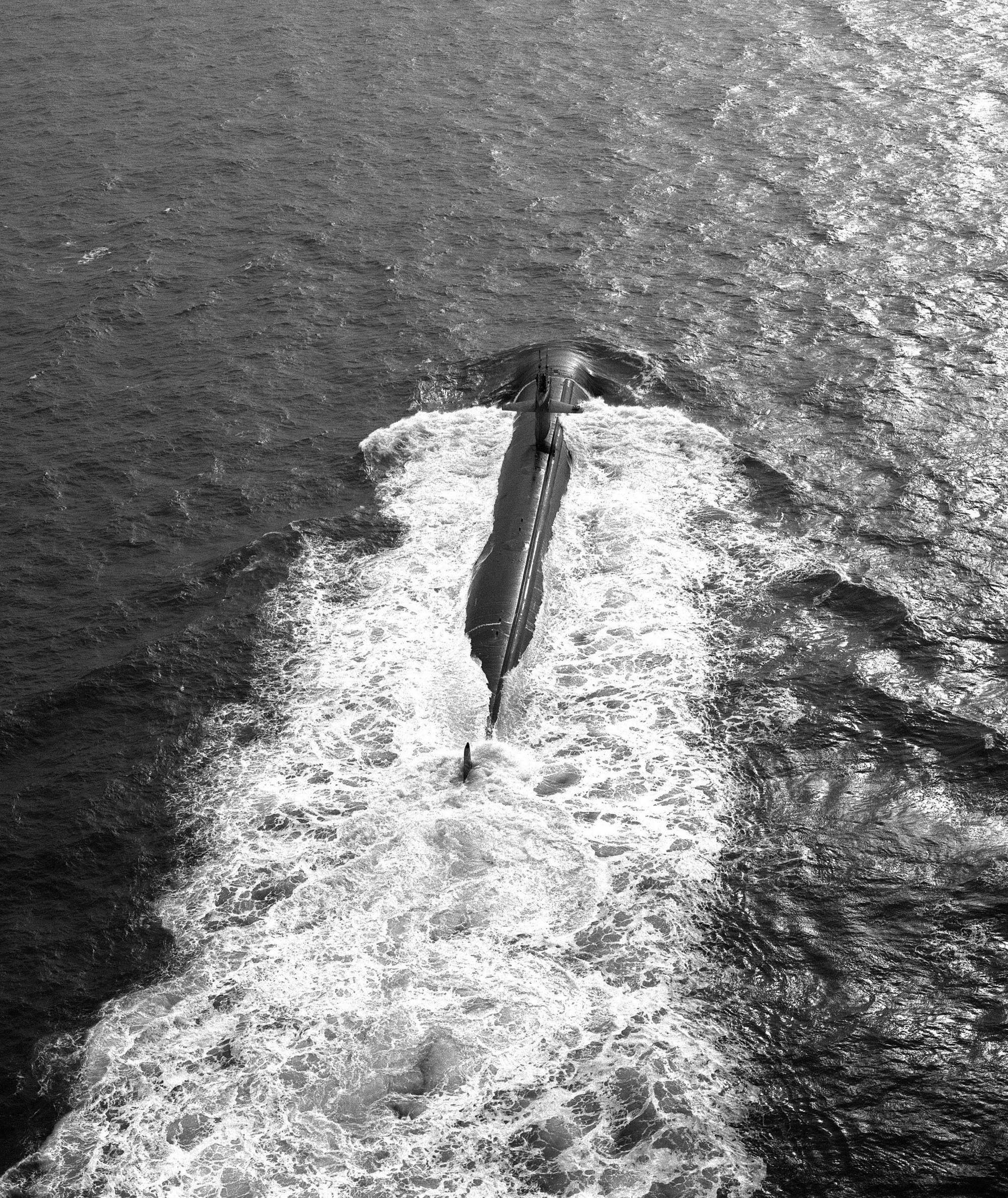 651k | Aerial stern view of the Olympia (SSN-717) taken on her sea trials 12 October 1984. | National Archives Identifier: 6393978 Agency-Assigned Identifier:DNSN8508312 Photo courtesy of catalog.archives.gov | |