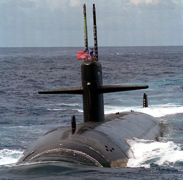 ![]() | 83k | Key West (SSN-722) cruises on the surface of the Pacific, 14 April 1997, as part of the Constellation (CV-64) battle group enroute to the Arabian Gulf to enforce no-fly zones and monitor shipping. | USN photo N-4126O-002, by PH3 James W. Olive. Submitted by Fabio Peña, courtesy of NAVCHINFO web site. | |