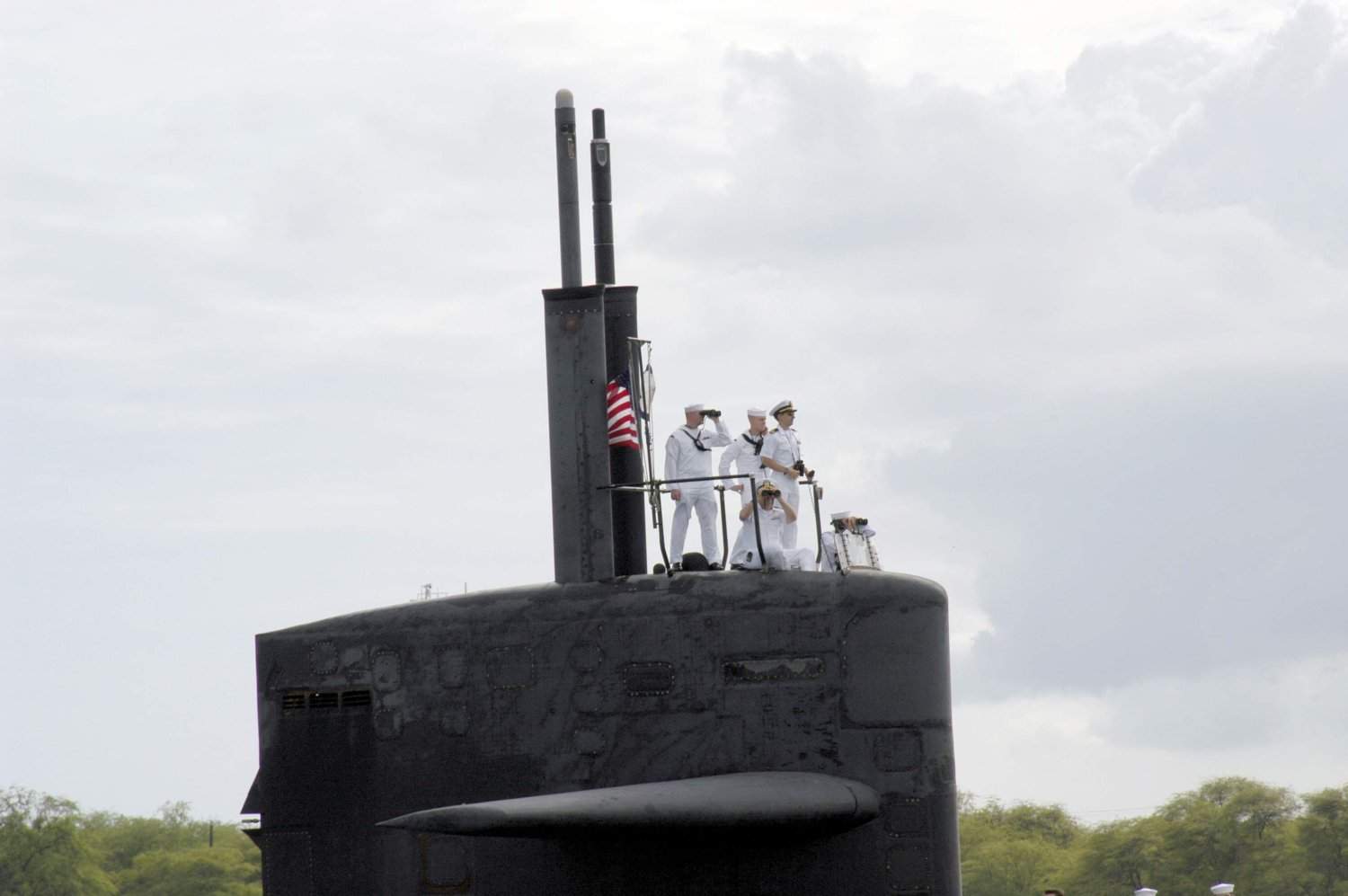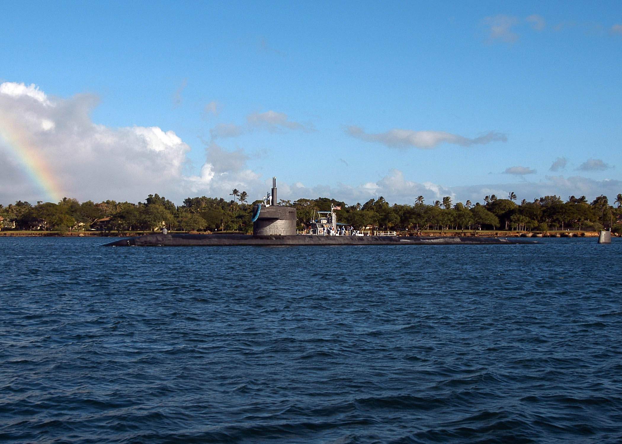 ![]() | 299k | Getting nudged by the tug Neil Abercrombie the Key West (SSN-722) pulls into its homeport in Pearl Harbor, Hawaii, 24 July 2003. | USN photo # N-8157C-005, by Chief Journalist David Rush, courtesy of news.navy.mil. | |