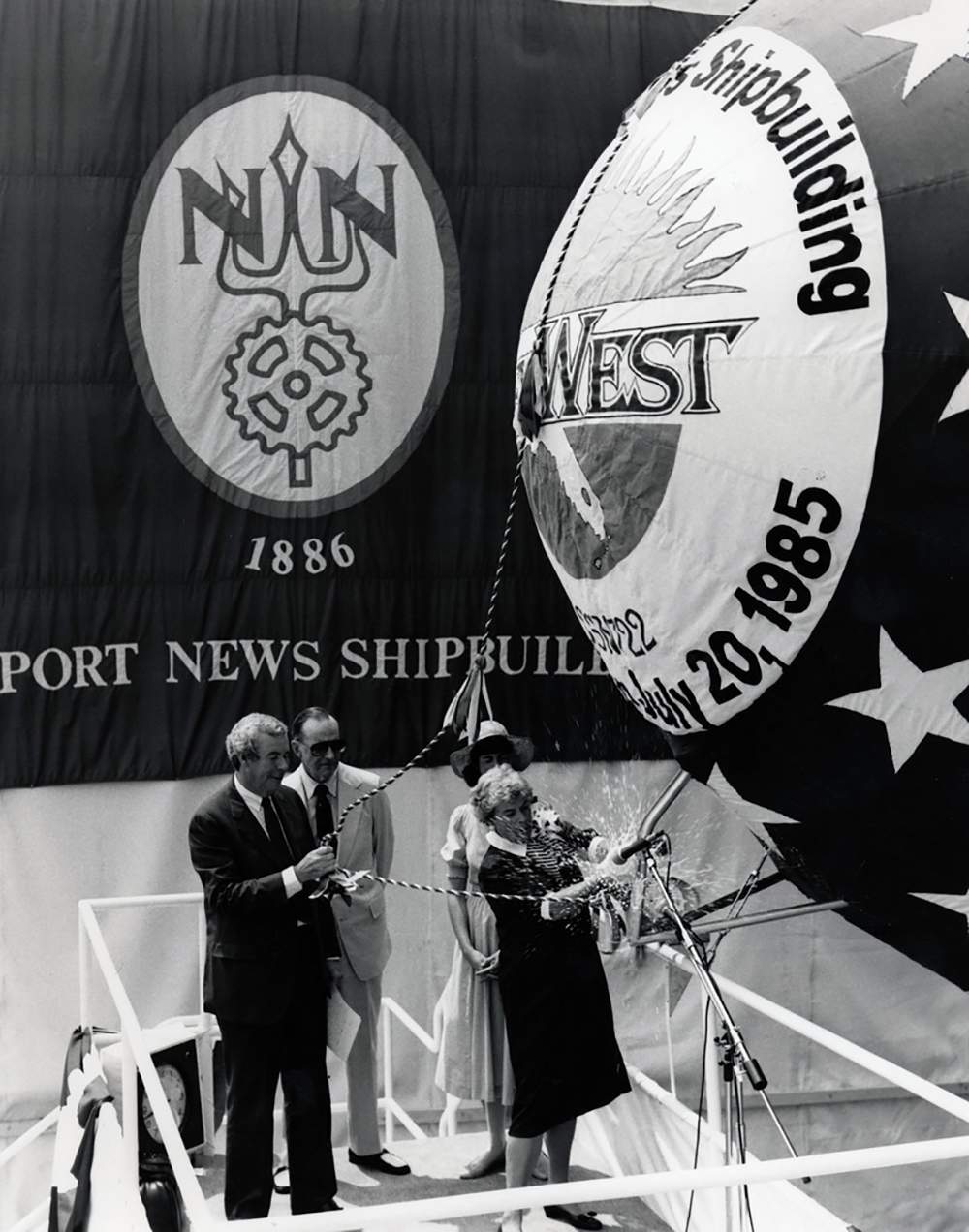 ![]() | 128k | Mrs. Robert H. Conn, wife of Assistant Secretary of the Navy Robert H. Conn, christens the nuclear-powered attack submarine Key West (SSN-722). | USN photo # DN-SN-86-12572 from the Department of Defense Still Media Collection, courtesy of dodmedia.osd.mil. via Robert Hurst. | |