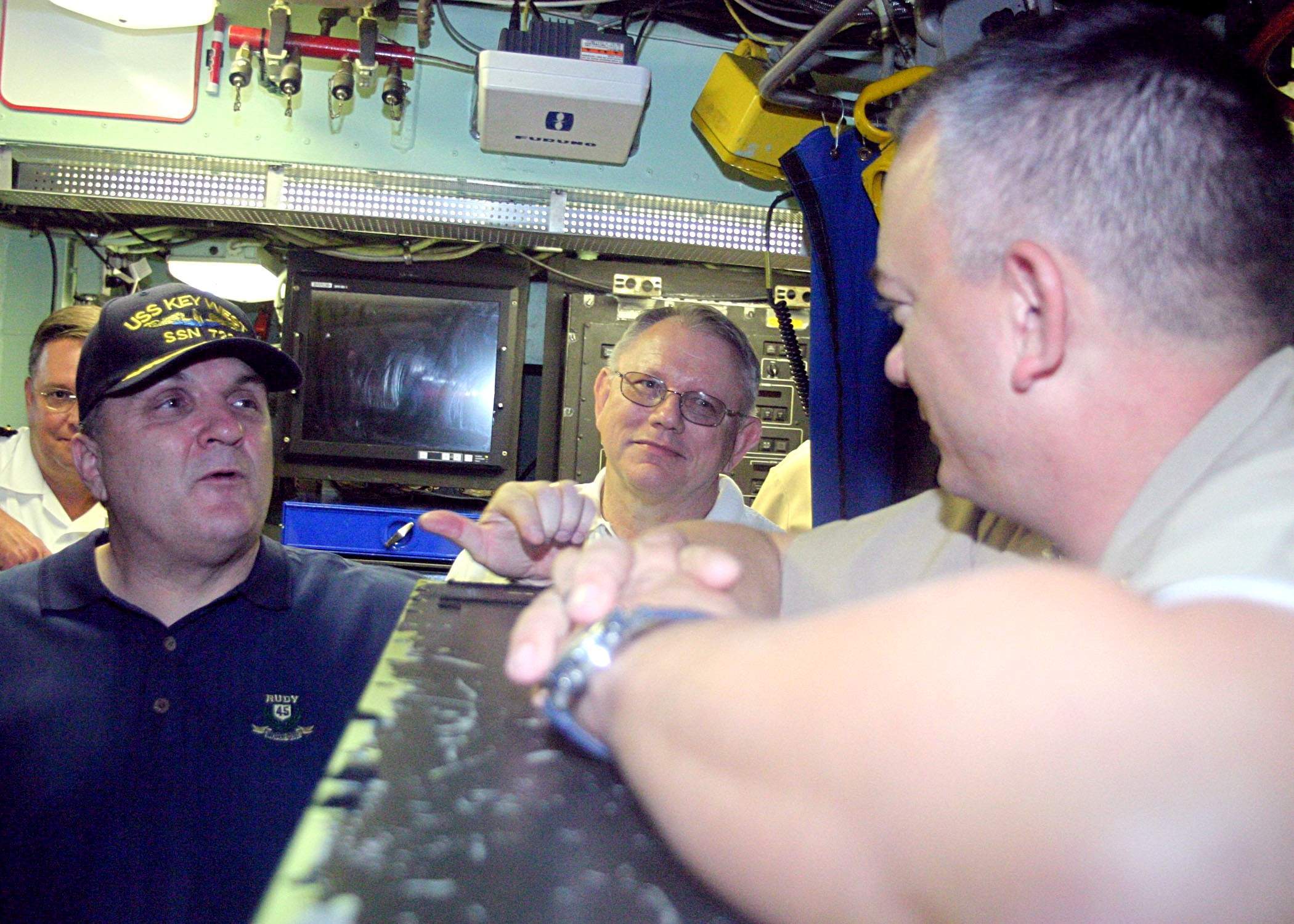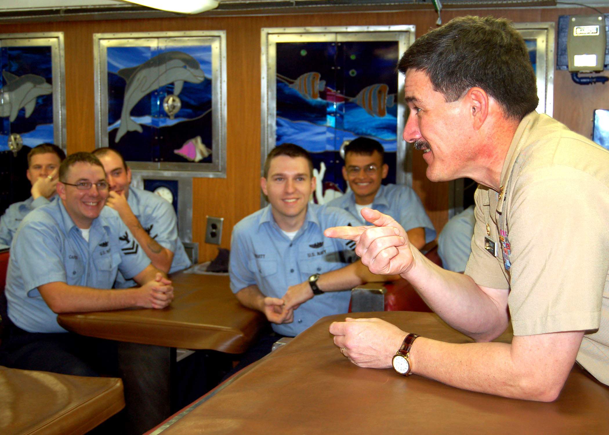 ![]() | 240k | Master Chief Petty Officer of the Navy (MCPON) Terry Scott speaks to the crew of the Los Angeles class fast attack submarine Key West (SSN-722) on 6 December 2005. Key West recently returned to her homeport of Naval Station Pearl Harbor from a West Pacific deployment on 10 November 2005. | USN photo # N-0879R-006, by Chief Journalist David Rush, courtesy of news.navy.mil. | |