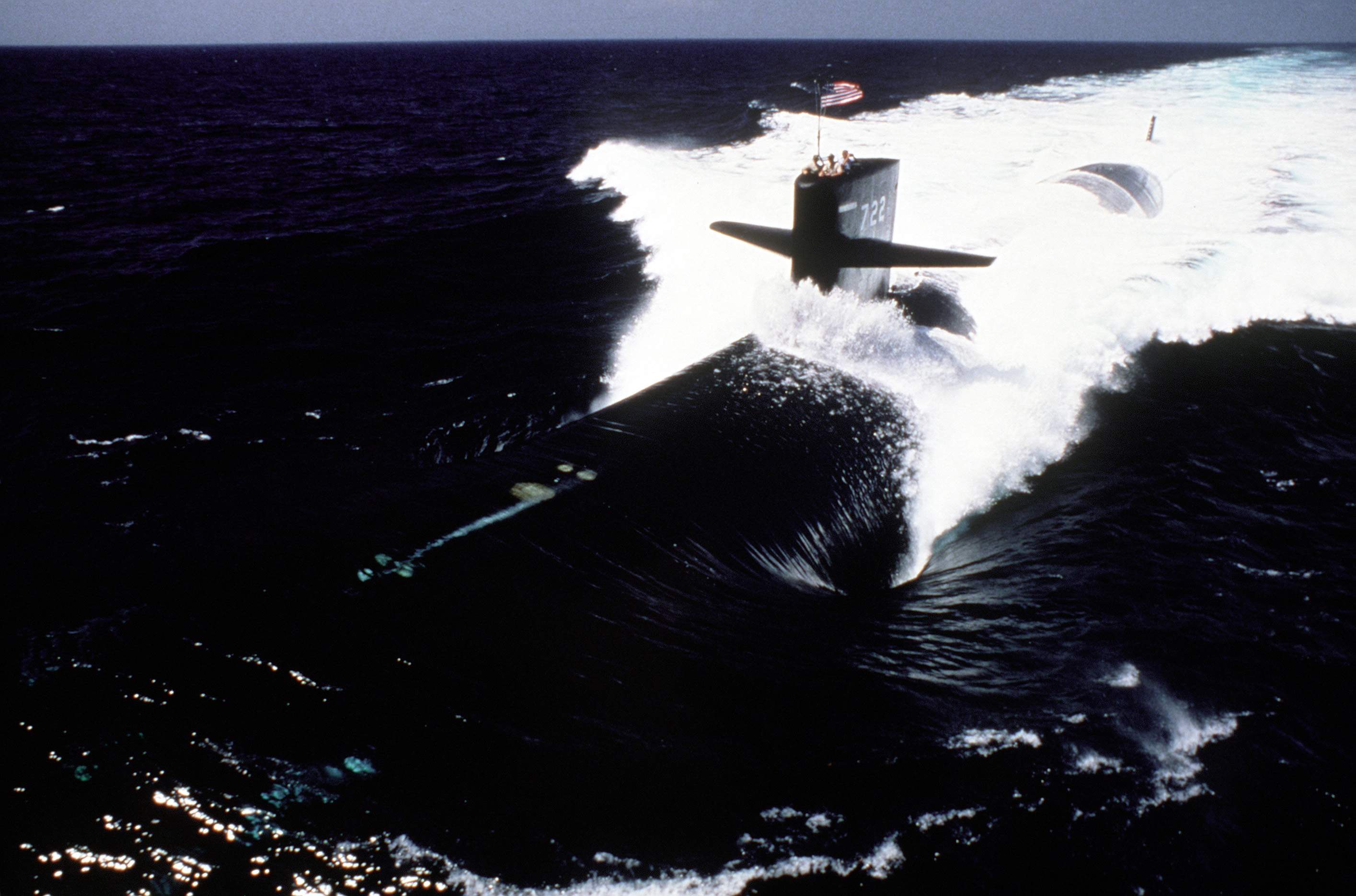 ![]() | 320k | The Los Angeles class attack submarine Key West (SSN-722), undergoing sea trials off the coast of Virginia, 1987. | USN photo # DN-ST-89-01397, by Chrix Oxley from the Department of Defense Still Media Collection, courtesy of dodmedia.osd.mil. | |