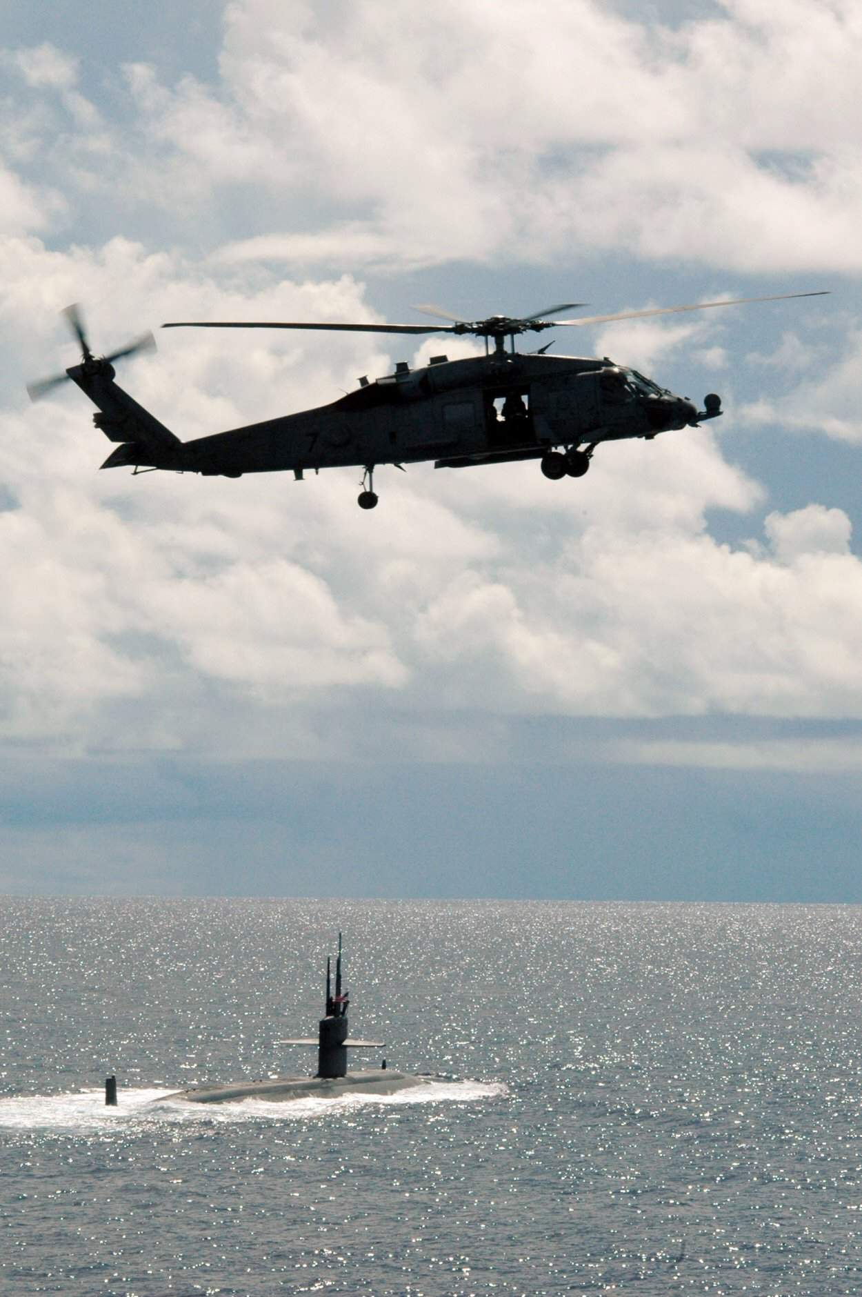 ![]() | 192k | An HH-60H Seahawk from Helicopter Anti-Submarine Squadron (HS) 14 assigned to Kitty Hawk (CV-63) flies over Key West (SSN-722) prior to Valiant Shield's photo exercise. | USN photo # N-3136P-041 by Mass Communication Specialist 3rd Class Jimmy C. Pan, courtesy of news.navy.mil. | |